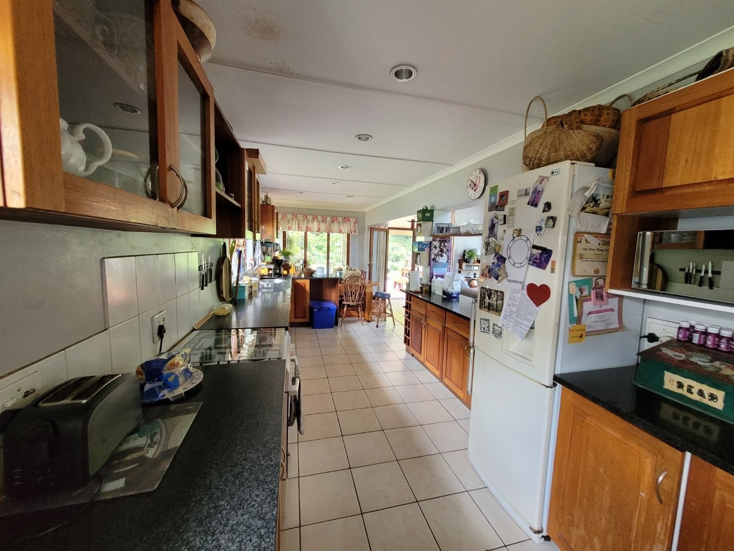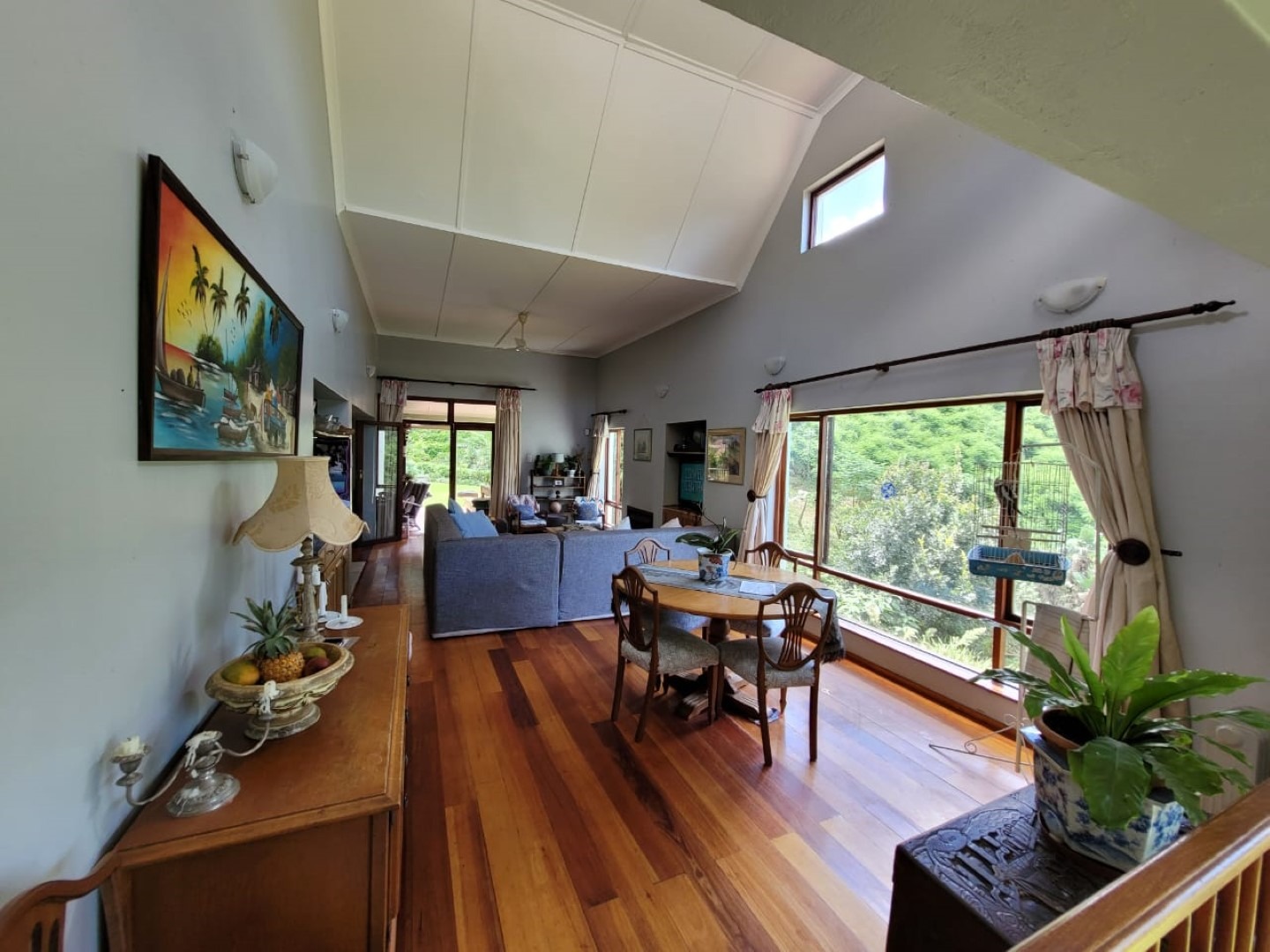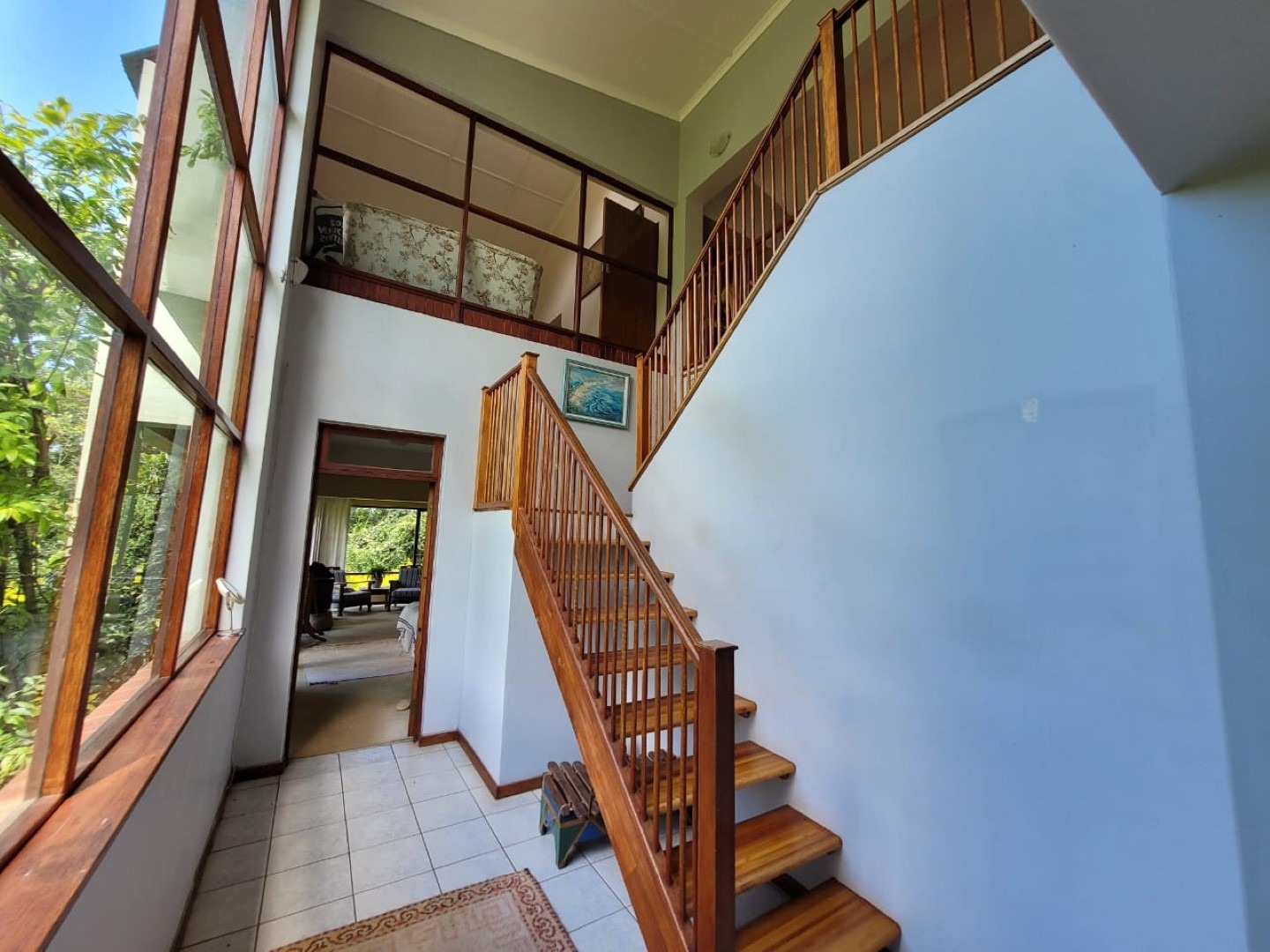 Step inside to a bright, multi-level interior characterized by high ceilings and abundant natural light streaming through numerous large windows. A prominent wooden staircase leads to an upper landing and a versatile loft/mezzanine space, adding character and functionality. The home offers a comfortable lounge, a dedicated dining room, and a family TV room, providing ample space for relaxation and entertainment. The functional kitchen, equipped with natural wood cabinetry and extensive counter space, offers practical storage and a homely feel.
