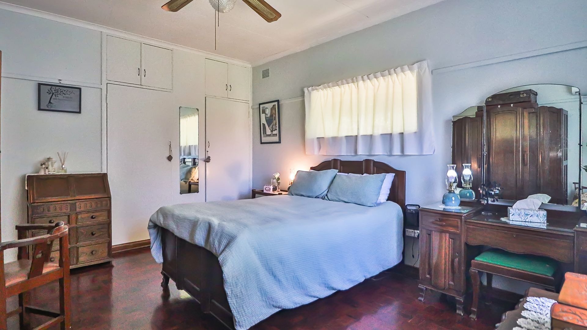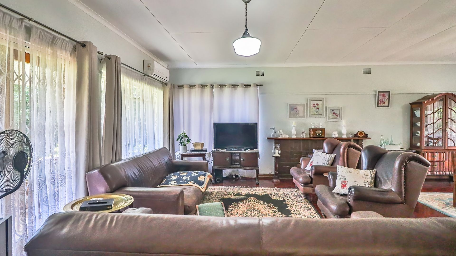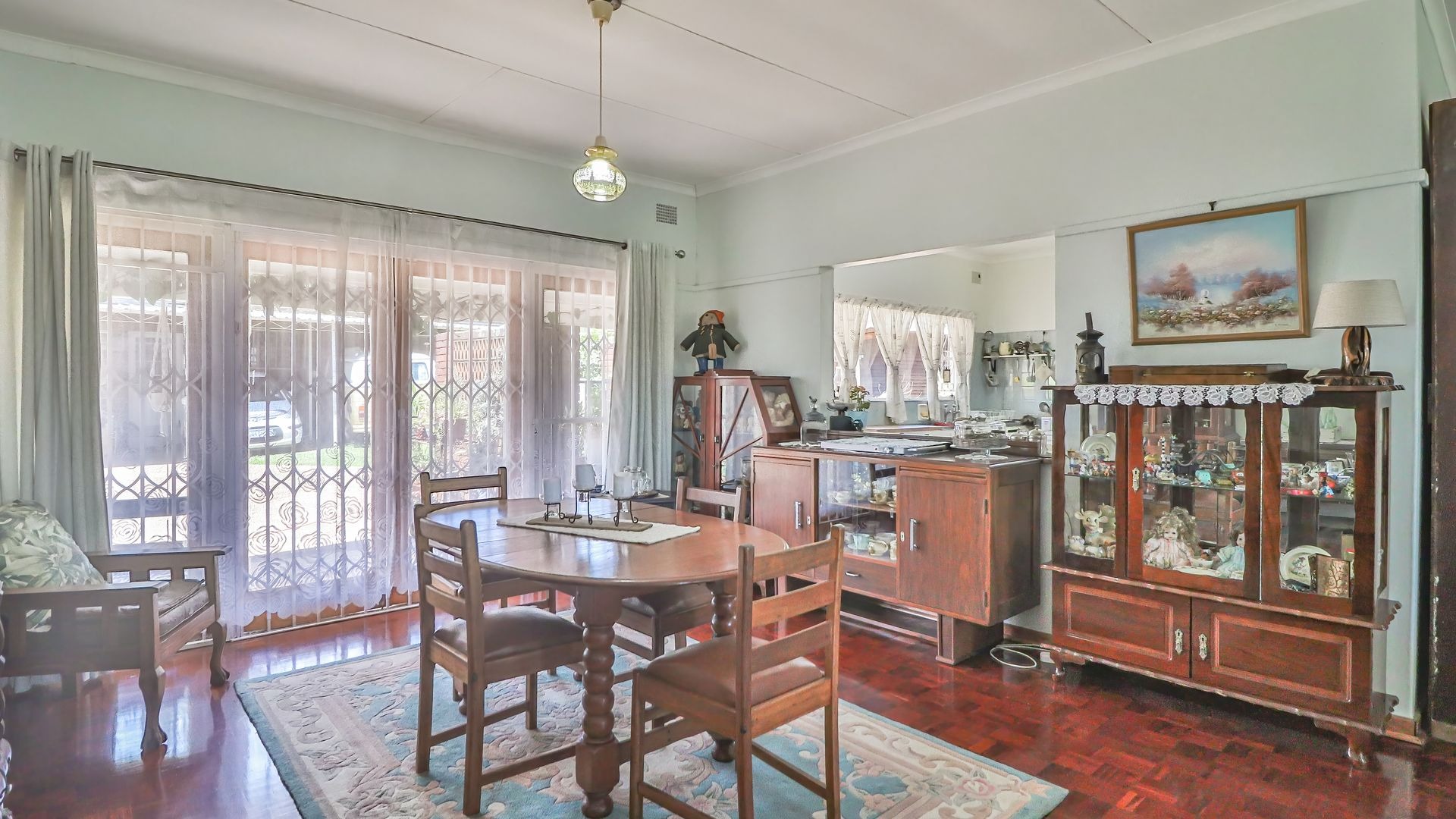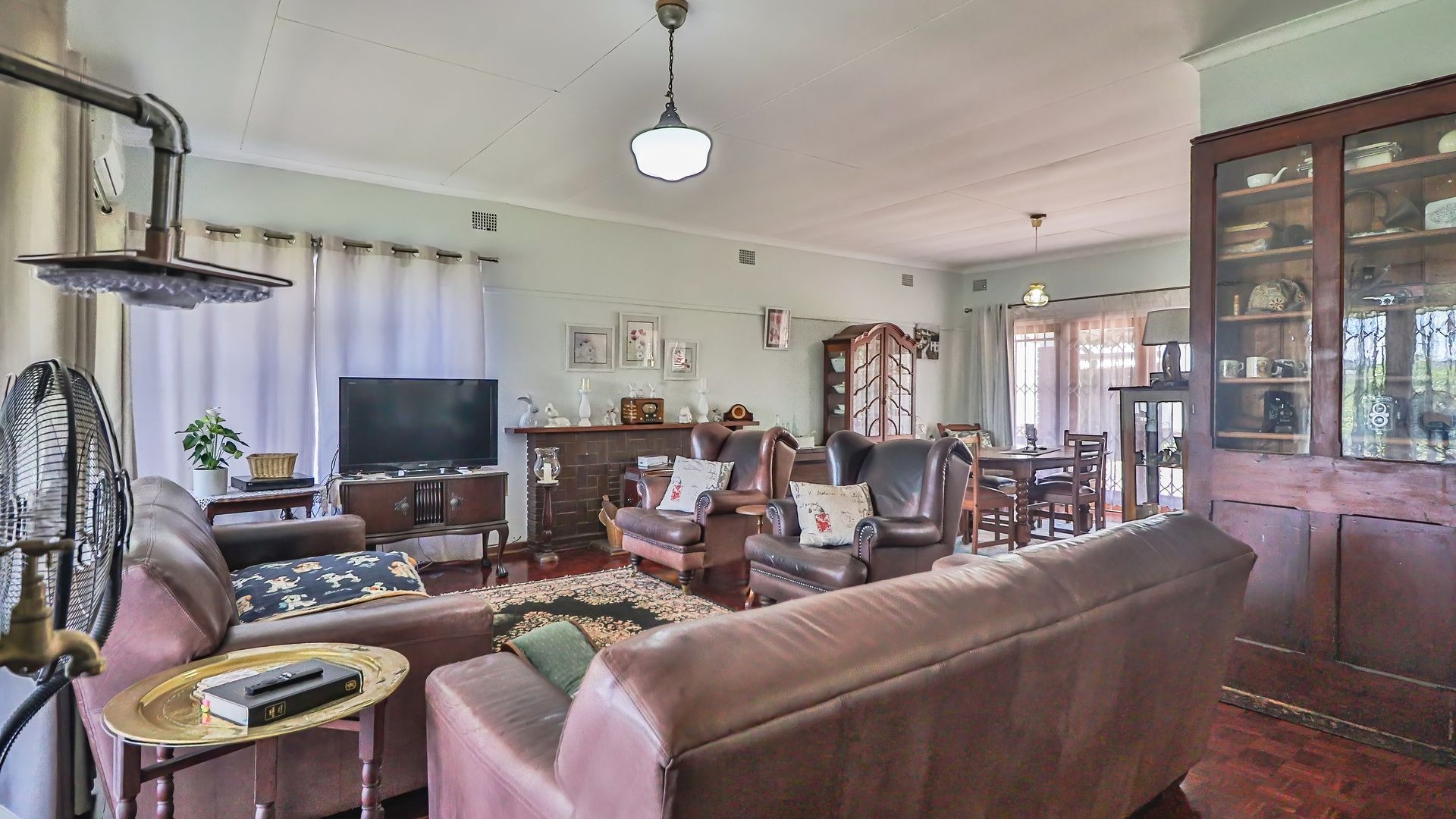 Inside, the home features three well-sized bedrooms, one and a half bathrooms, a cozy lounge, a dedicated dining area, and a functional kitchen. Beautiful parquet flooring runs throughout, adding warmth and character, while built-in cupboards, air conditioning, and burglar bars ensure comfort and peace of mind.