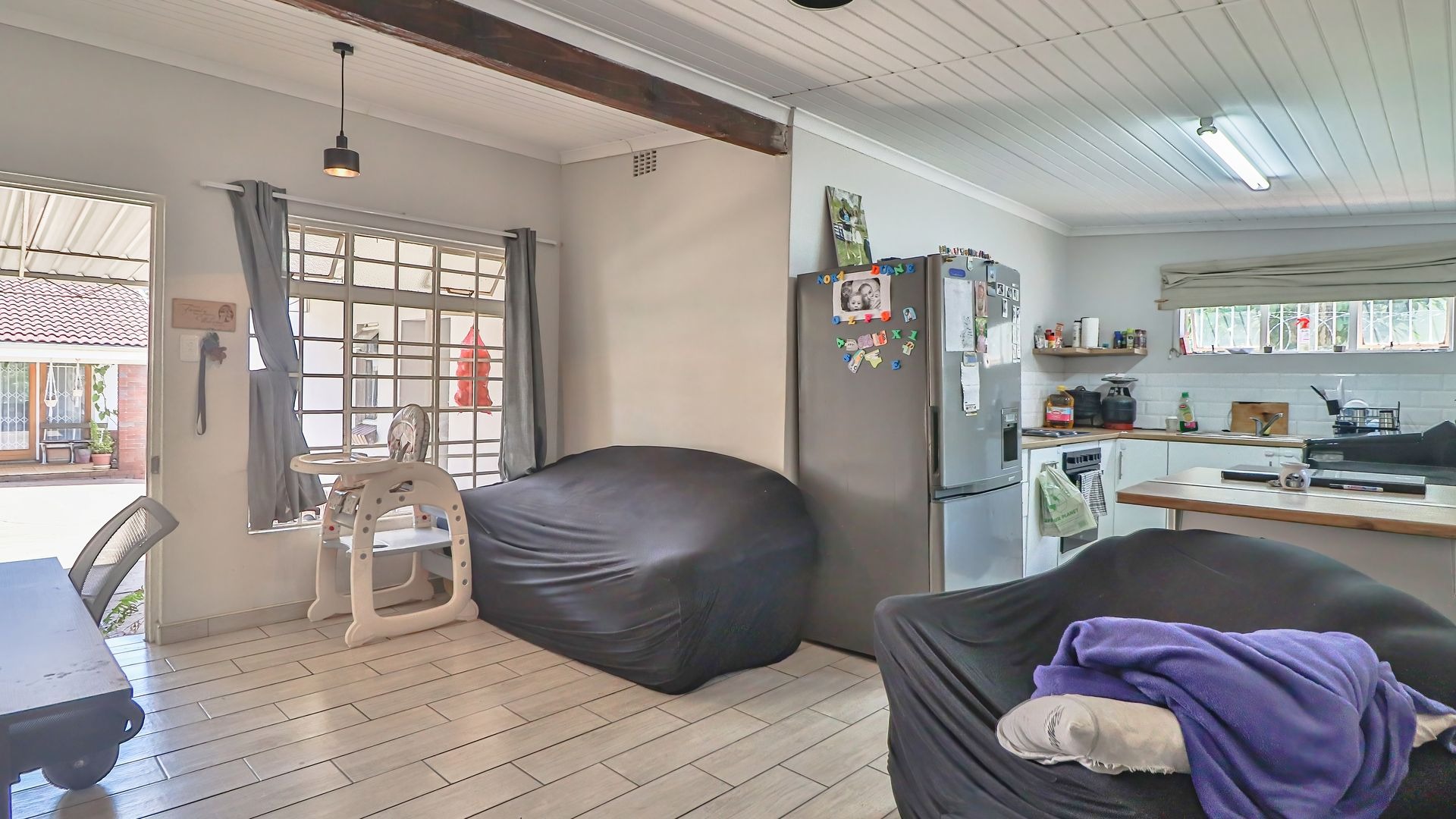Set on a generous 1,114 sqm erf, the property includes a single garage, parking for three additional vehicles, and a versatile wooden outbuilding for extra storage or workspace.