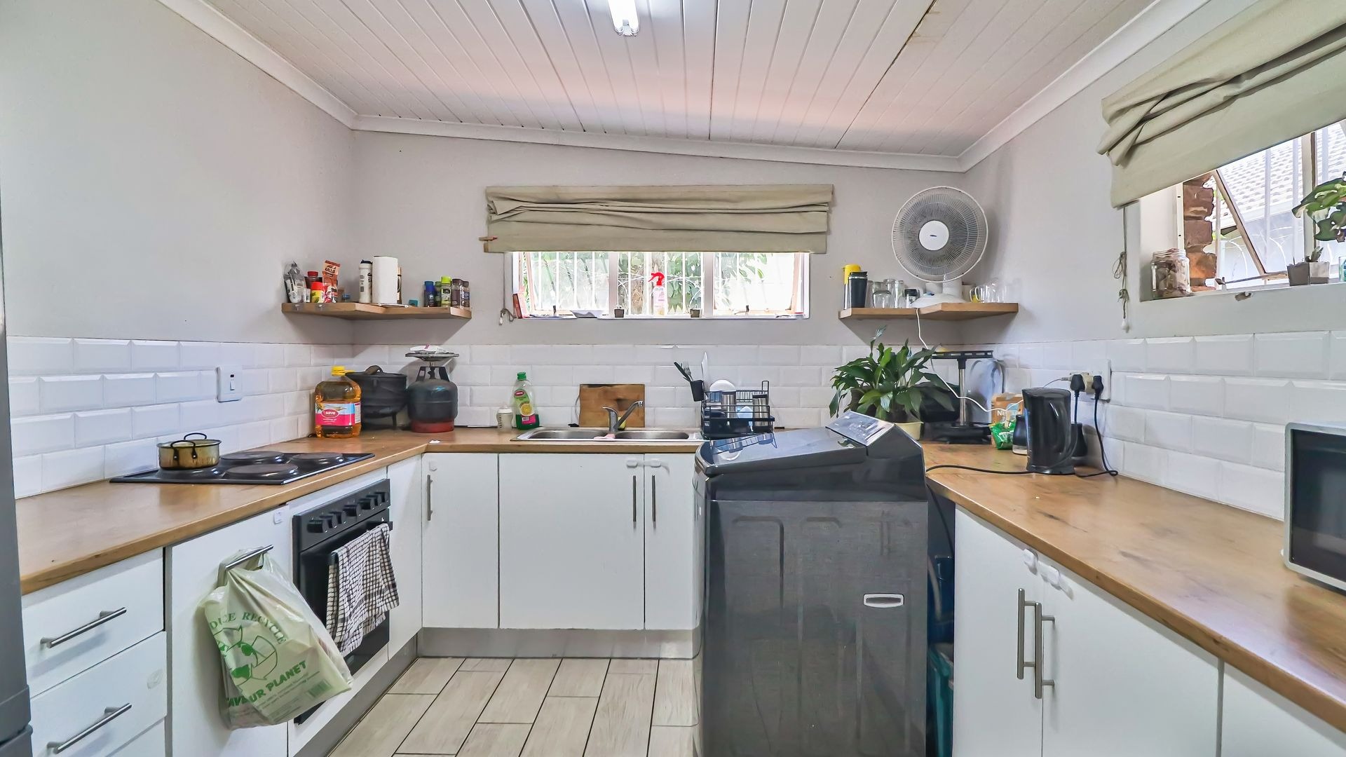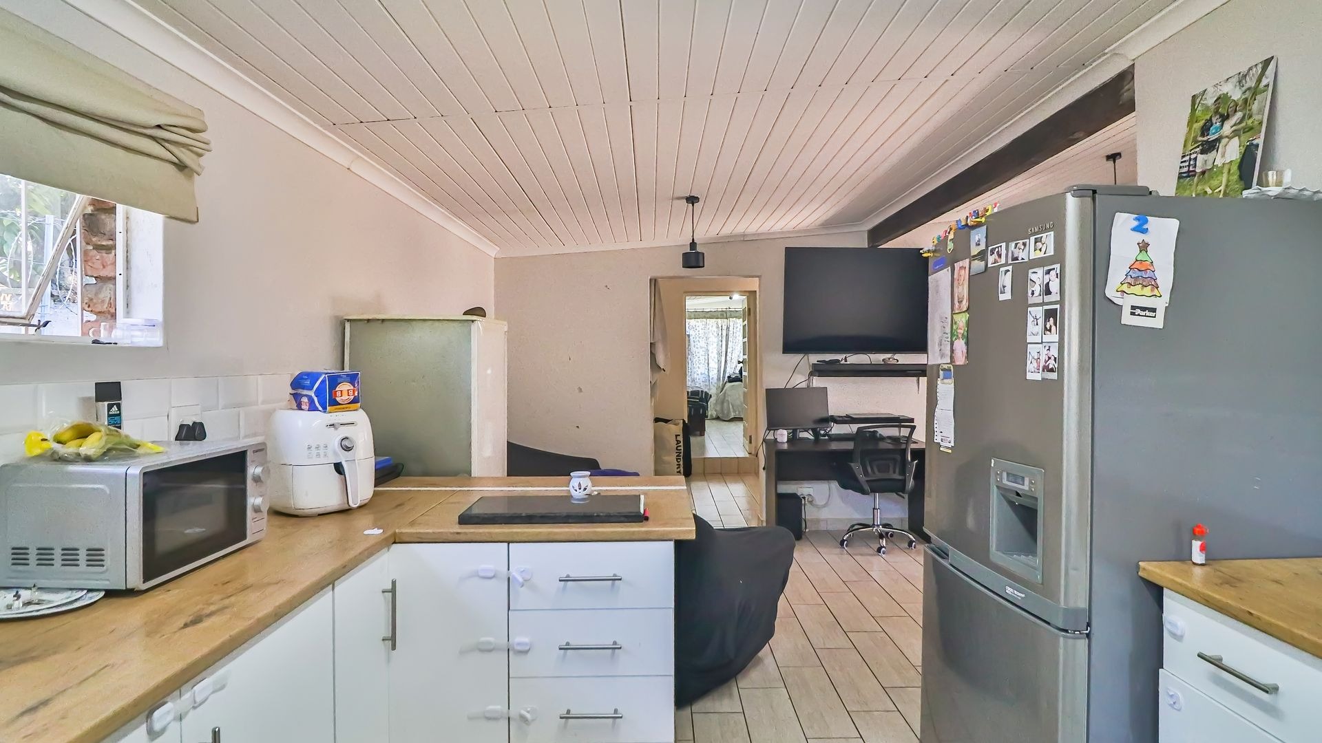 Set on a generous 1,114 sqm erf, the property includes a single garage, parking for three additional vehicles, and a versatile wooden outbuilding for extra storage or workspace.
