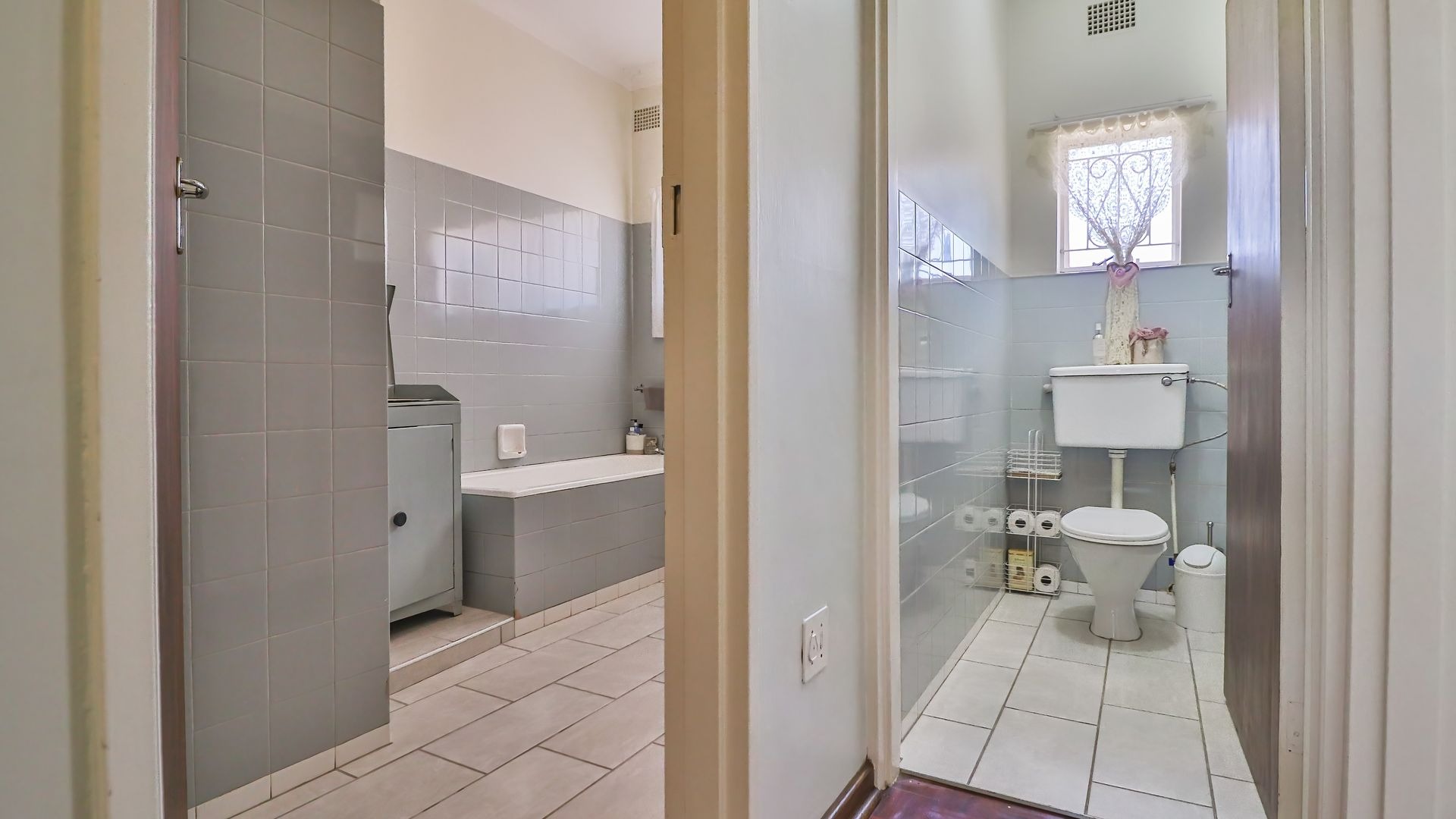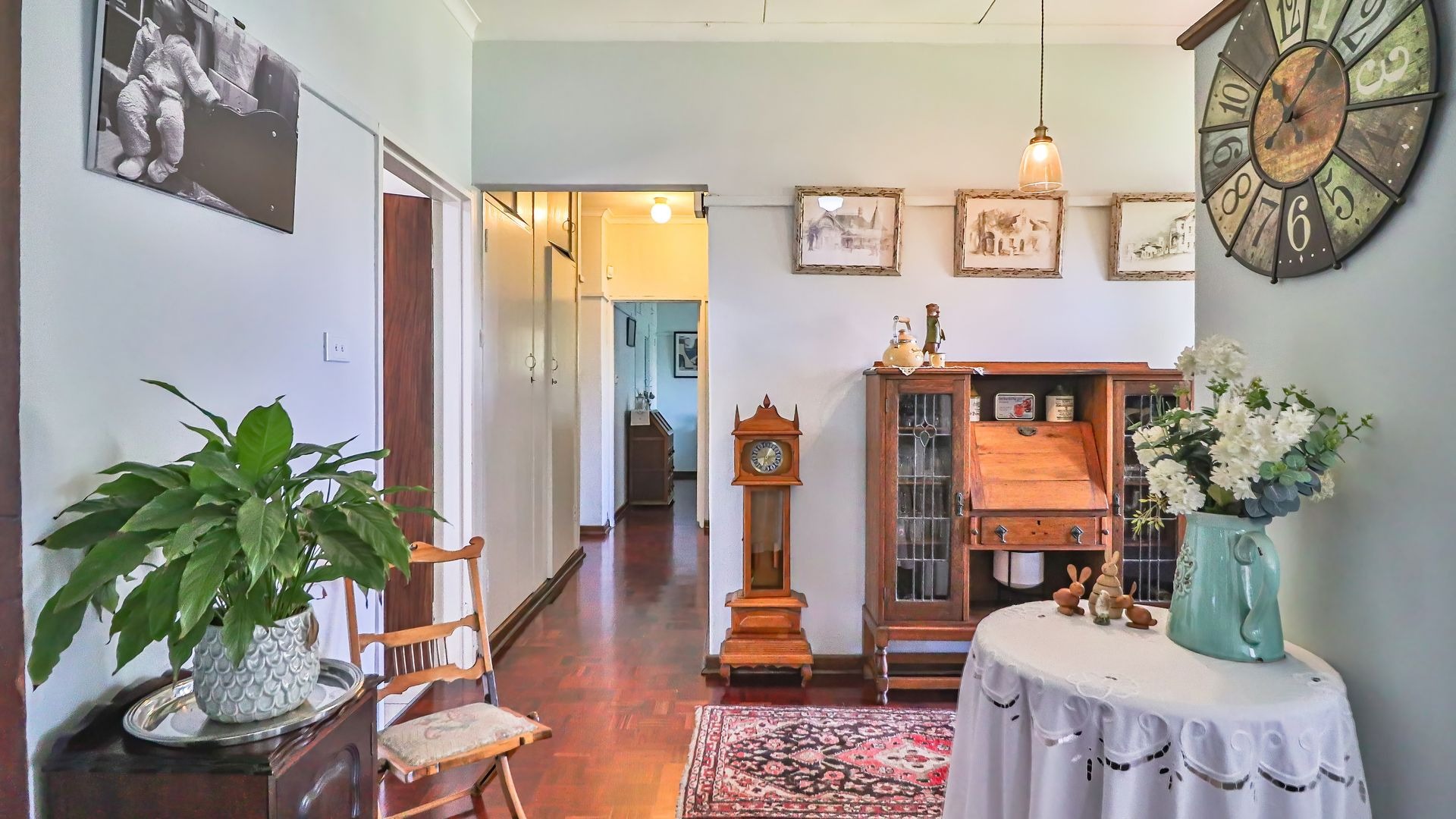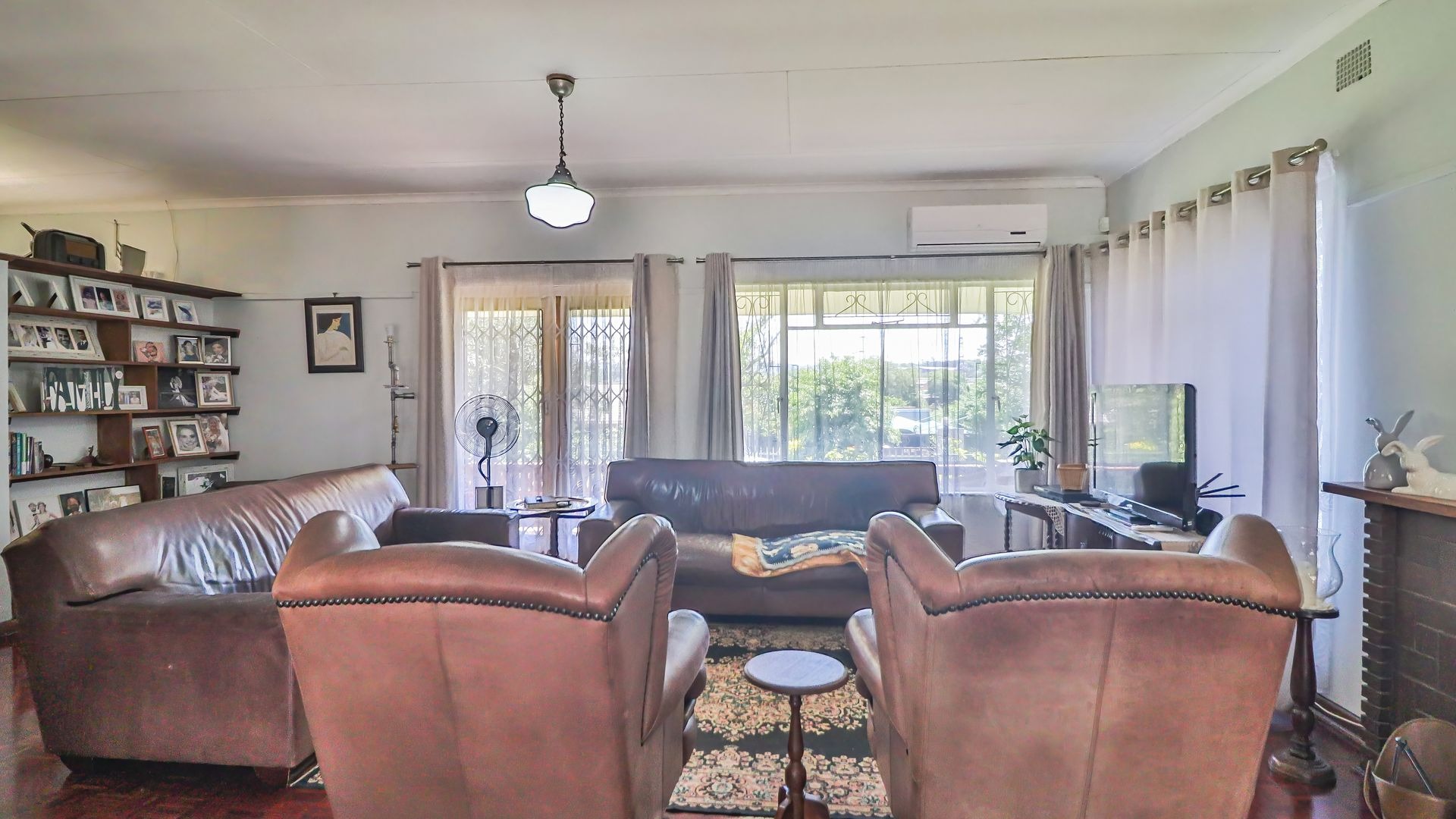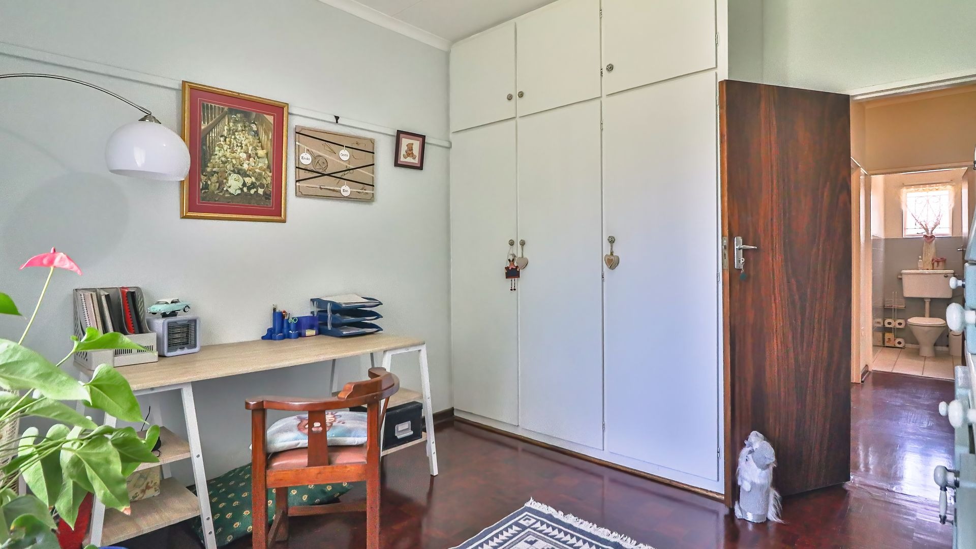 Inside, the home features three well-sized bedrooms, one and a half bathrooms, a cozy lounge, a dedicated dining area, and a functional kitchen. Beautiful parquet flooring runs throughout, adding warmth and character, while built-in cupboards, air conditioning, and burglar bars ensure comfort and peace of mind.