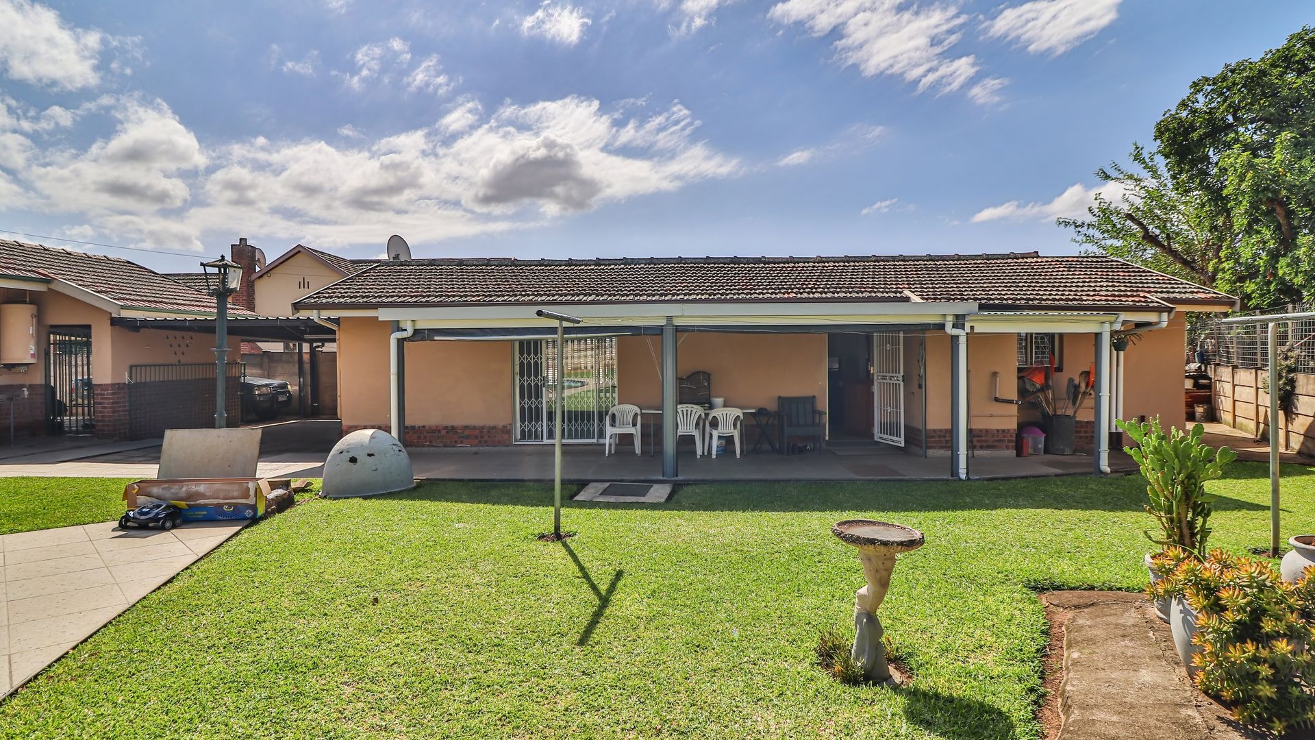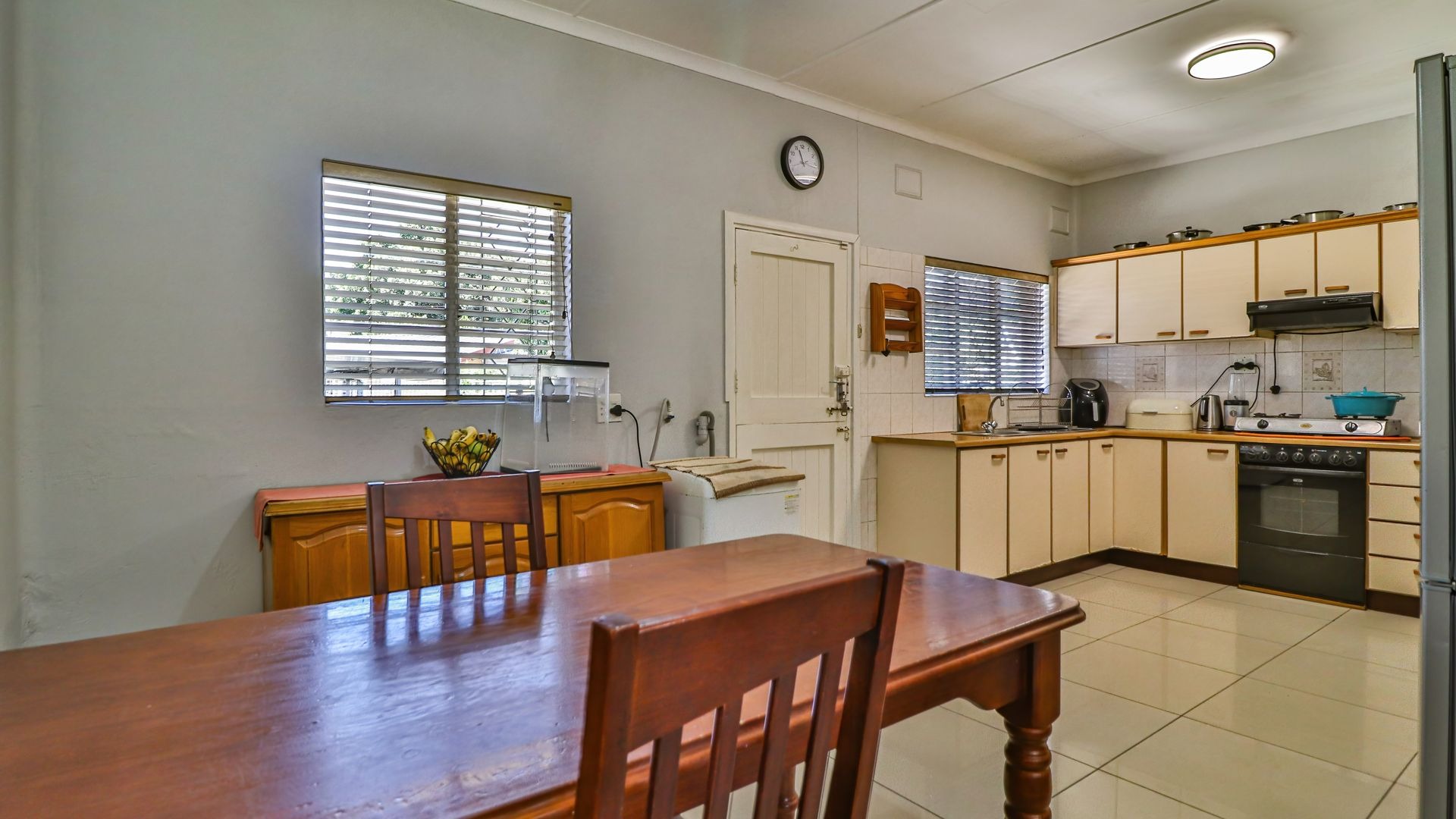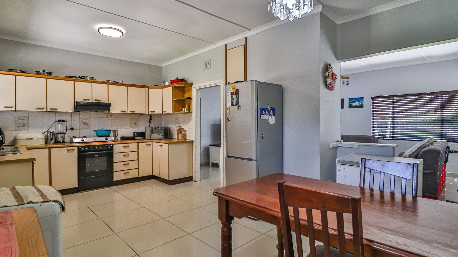 The main house features three generously sized bedrooms, all fitted with built-in cupboards, along with a spacious lounge that flows seamlessly into the dining area and kitchen. The layout is both practical and welcoming, making it ideal for everyday family living or shared accommodation.