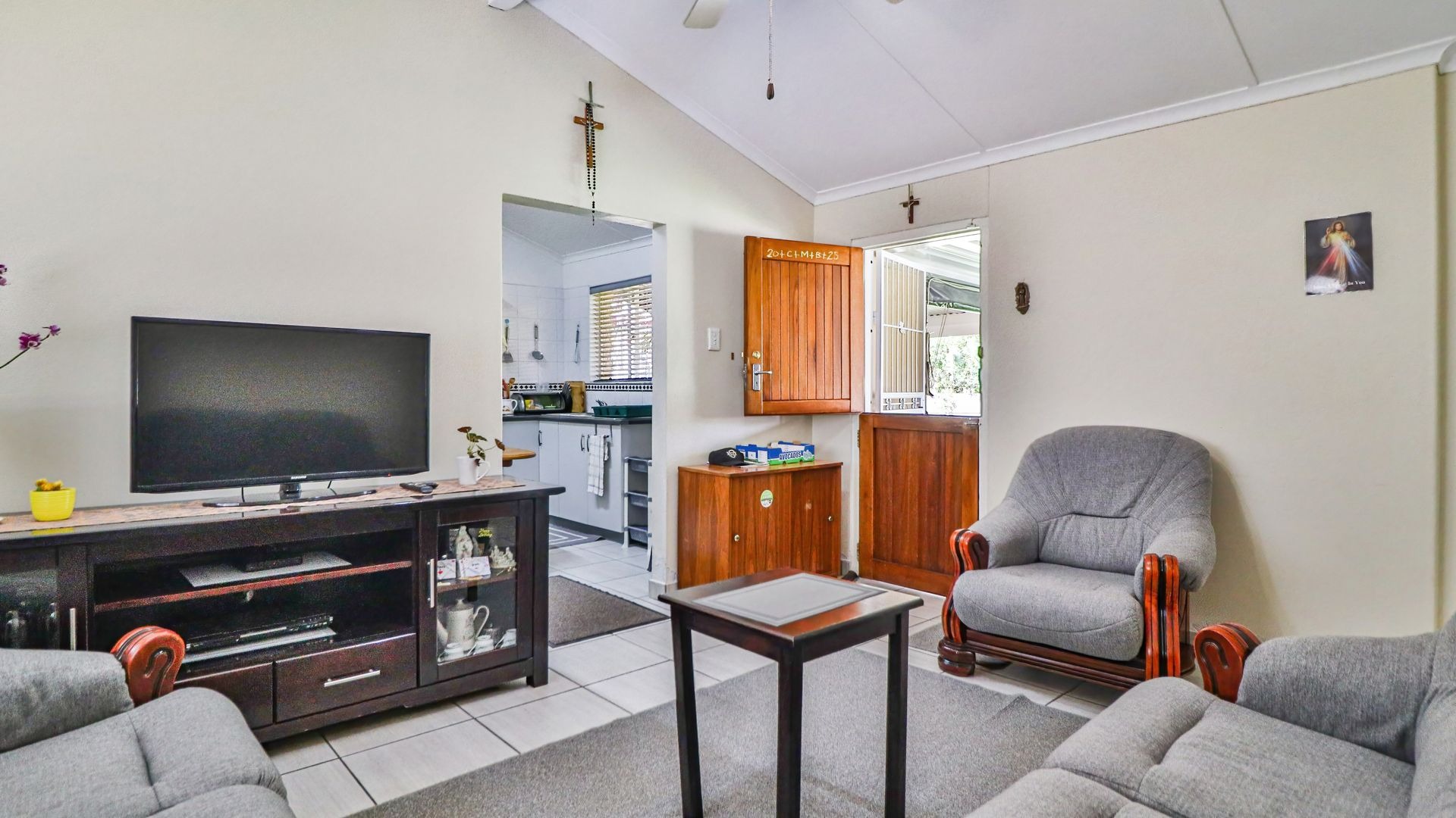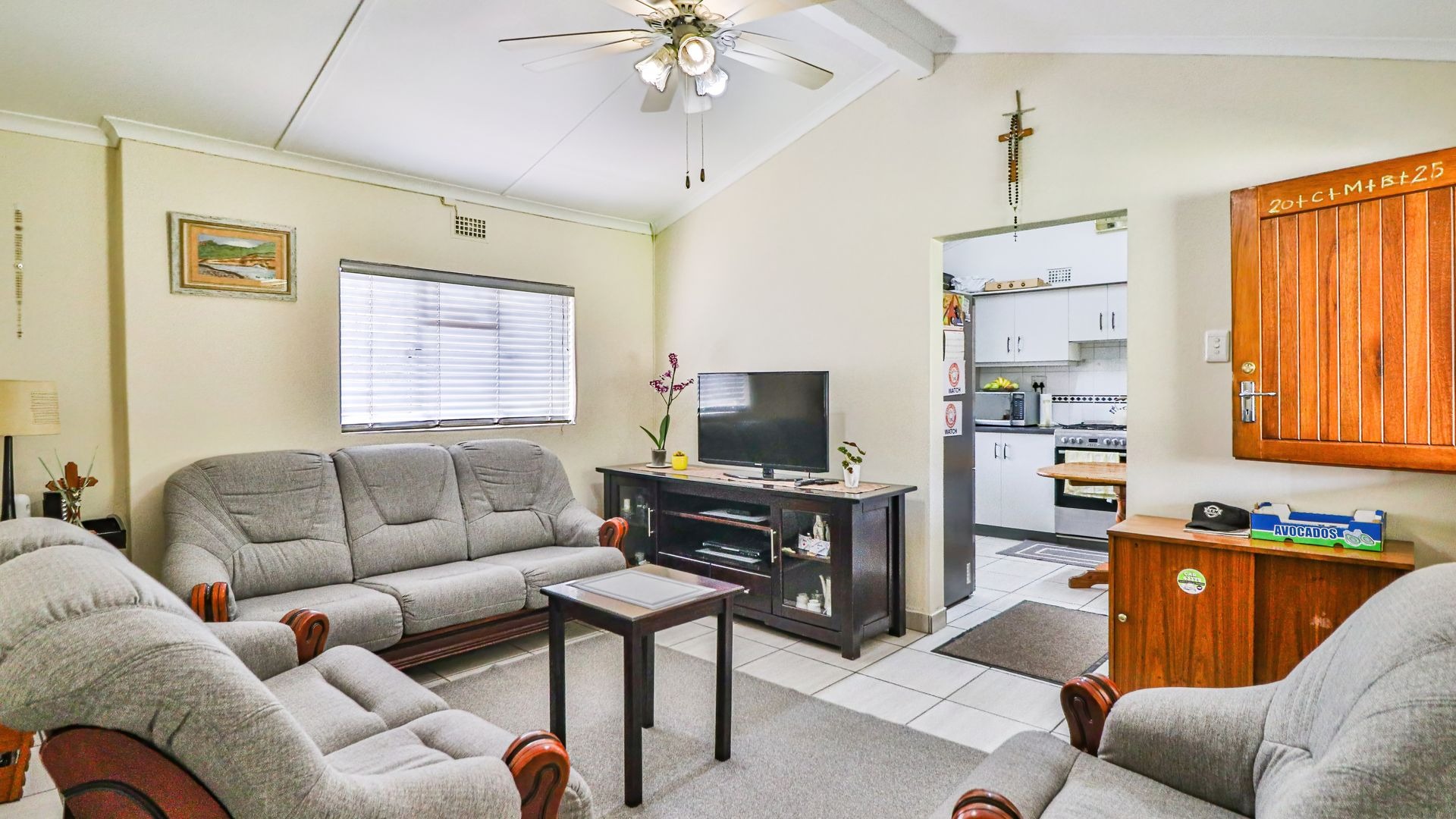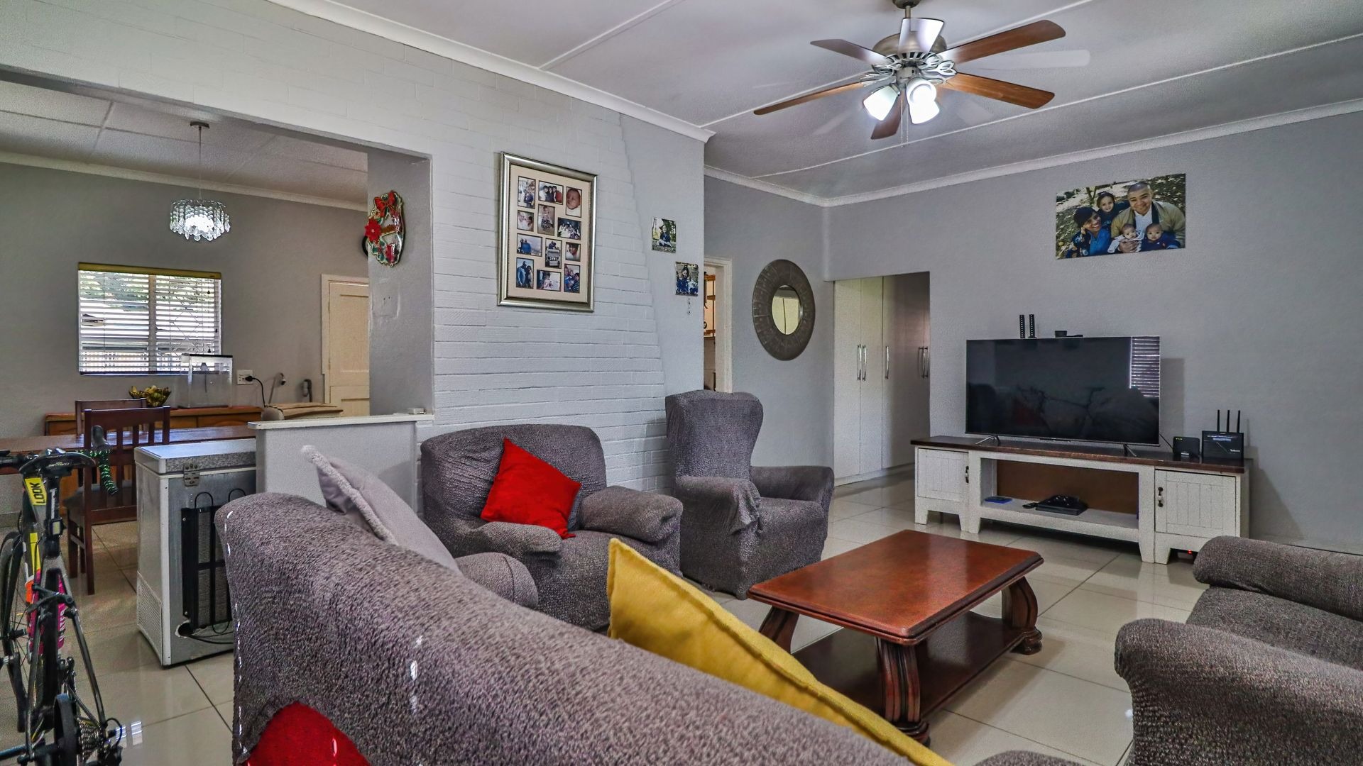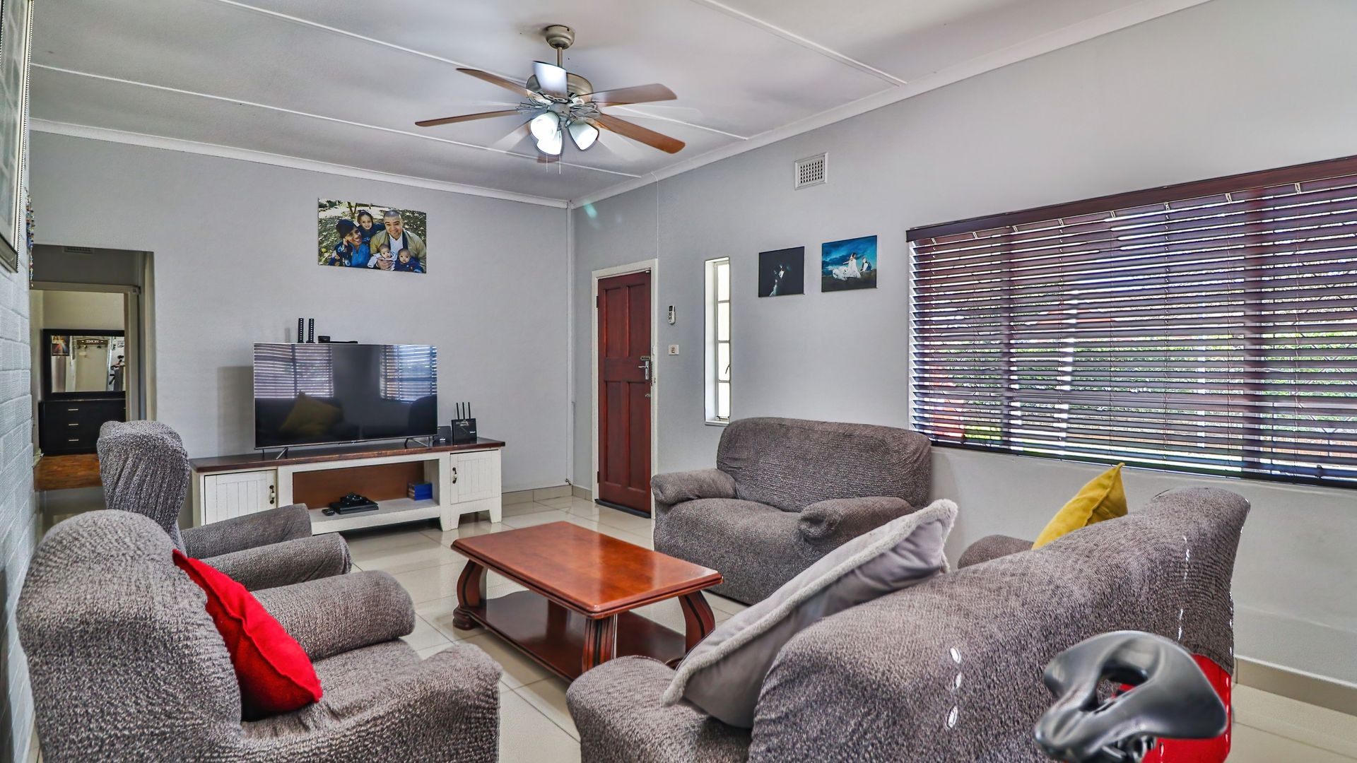 The main house features three generously sized bedrooms, all fitted with built-in cupboards, along with a spacious lounge that flows seamlessly into the dining area and kitchen. The layout is both practical and welcoming, making it ideal for everyday family living or shared accommodation.