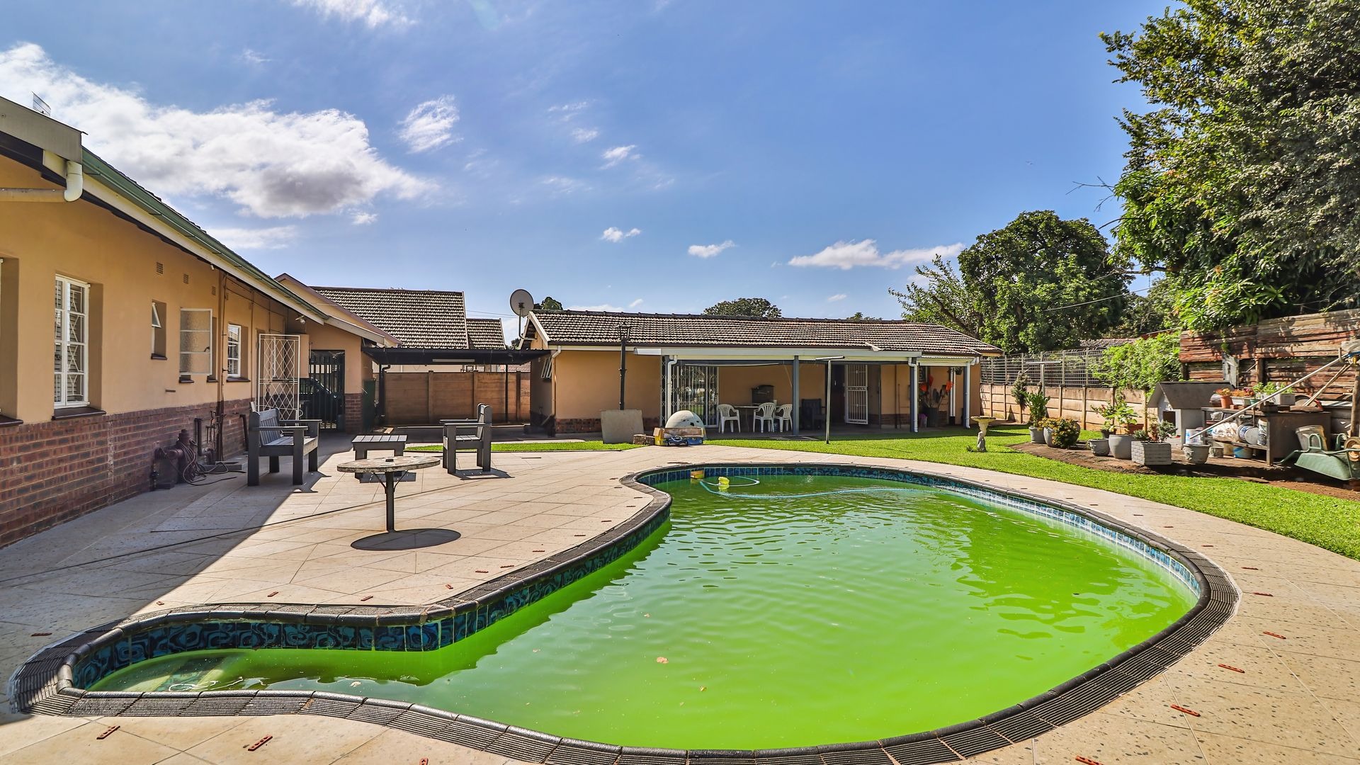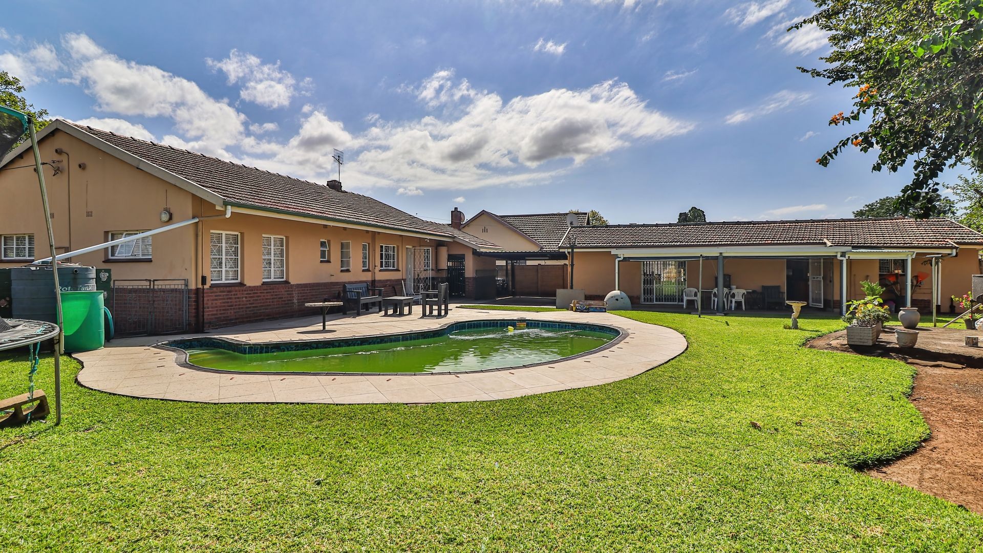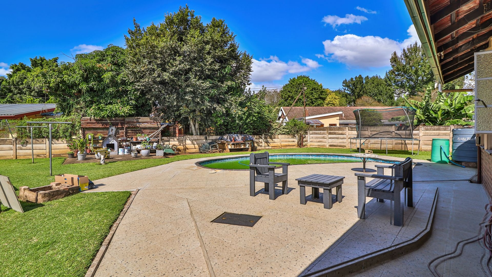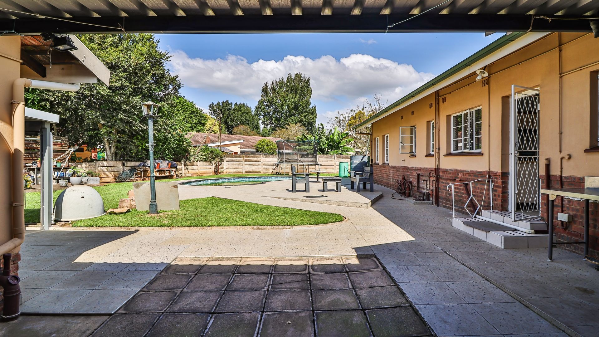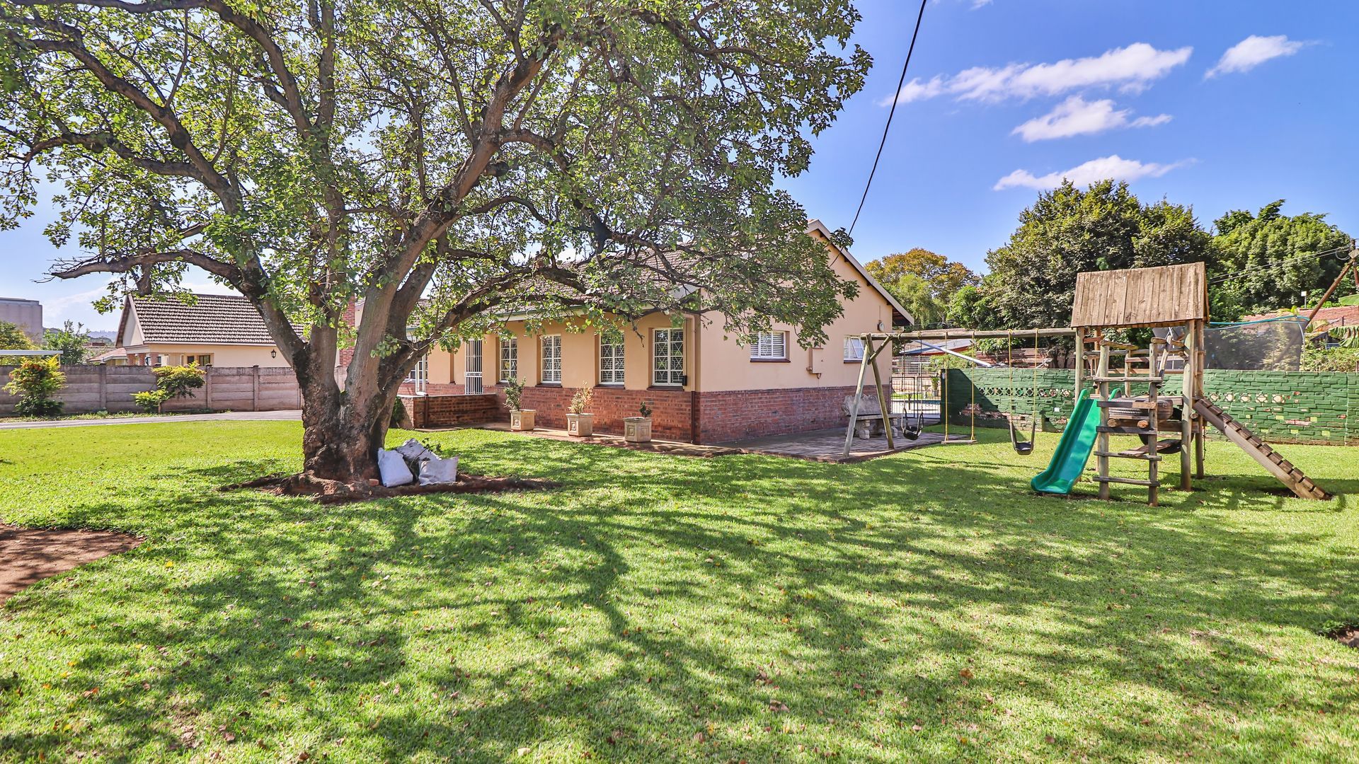 The outdoor space further enhances the appeal. A large, beautifully maintained front garden provides ample room for children and pets, while the backyard offers a swimming pool and braai area—perfect for entertaining or relaxing.