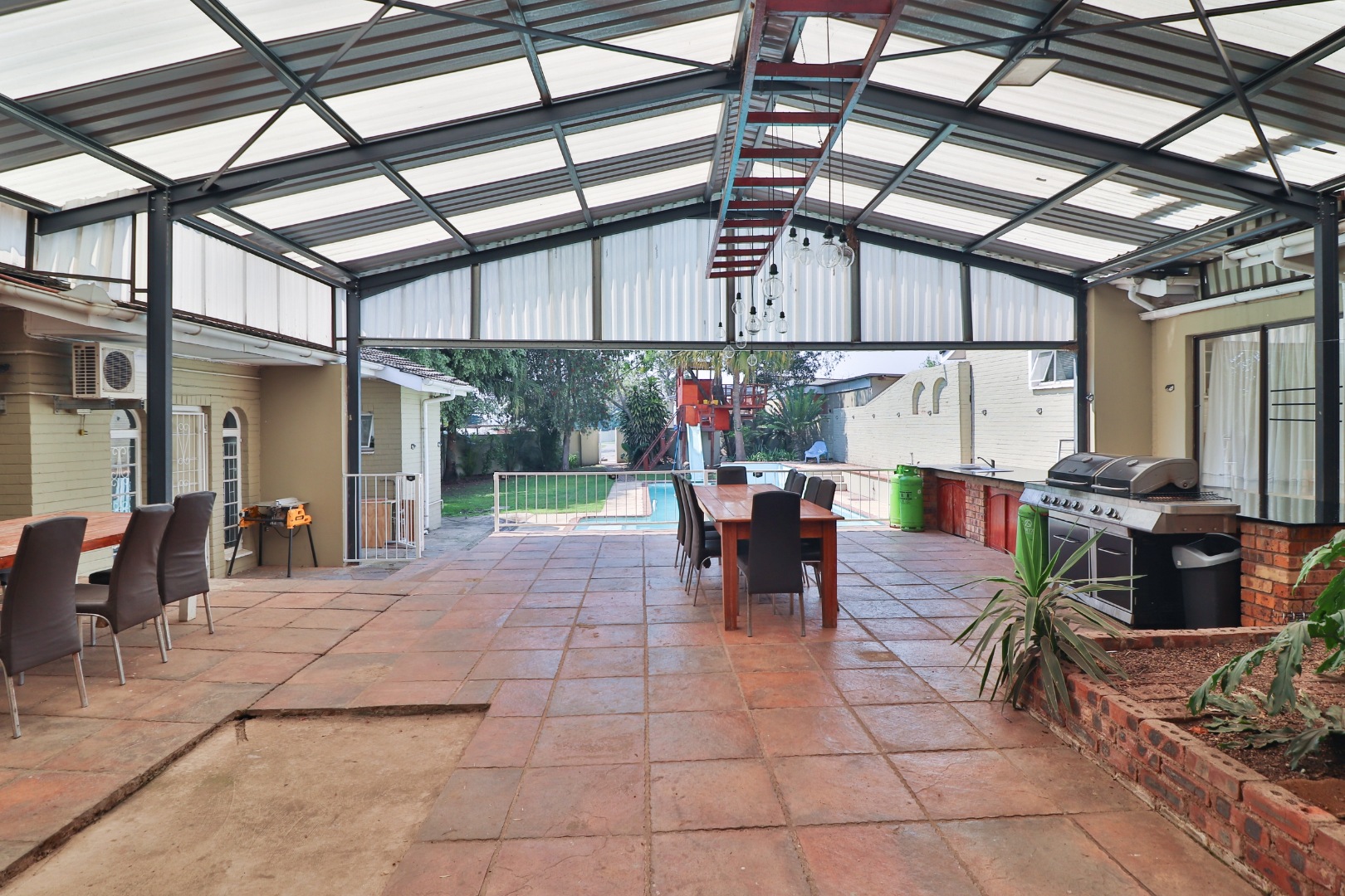 Entertain in style in the expansive 200 – seater Restaurant, an ideal venue for weddings, celebrations, night markets or private functions. The covered braai area and large pool are perfect for creating lasting memories with family or guests.