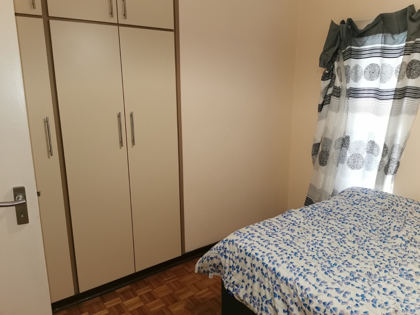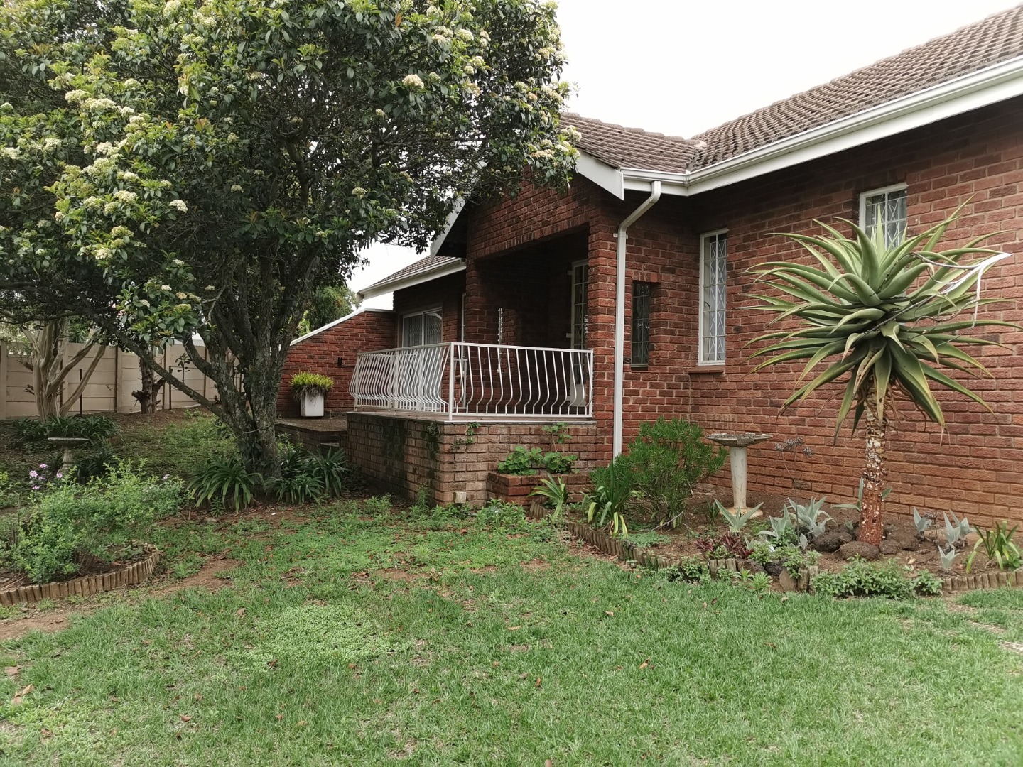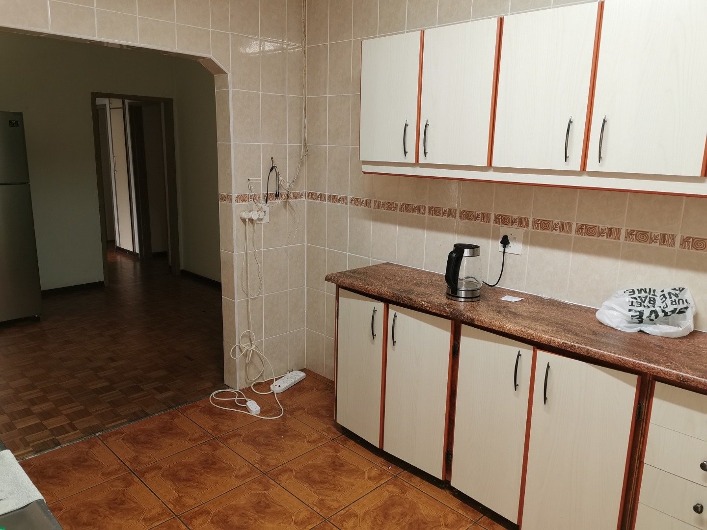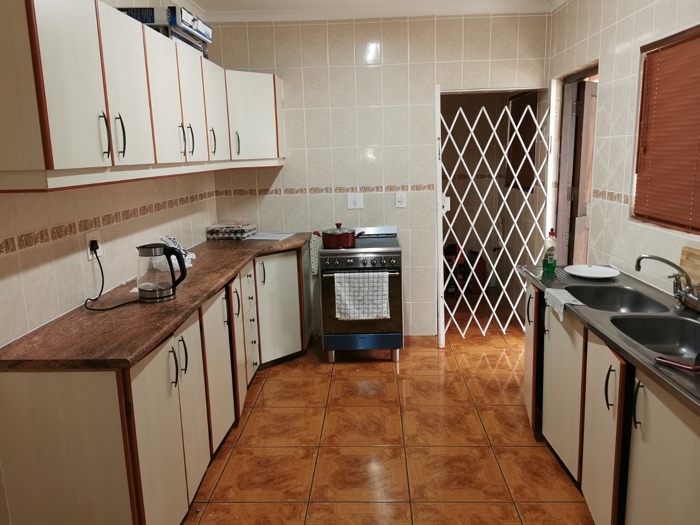 basin and toilet. Main bathroom has bath basin and toilet. Kitchen is fitted, tiled and comes with stove. Wooden floors in lounge, dining room and bedrooms. Spacious garden with swimming pool and wendy hut for extra storage. There is a single lock up garage with 3 undercover parking’s. Including a bachelor cottage with small kitchen and bathroom. Rent excludes utilities.