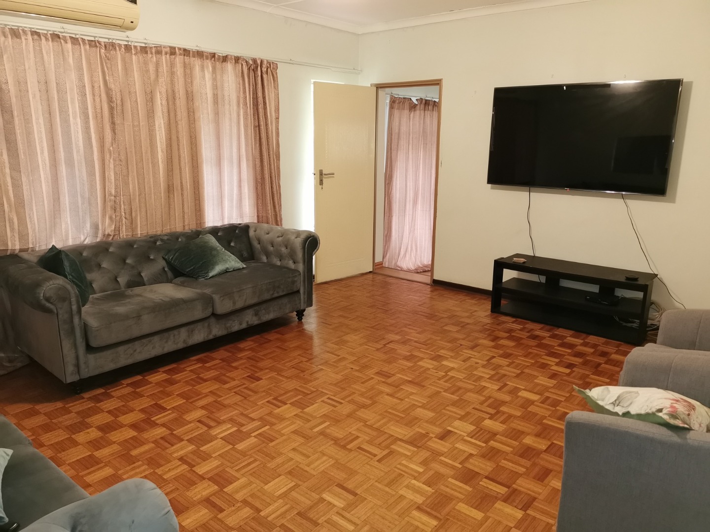 Spacious and neat family home to let in Bisley. The 4 bedrooms all have built in cupboards. Main bedroom has ensuite with shower,