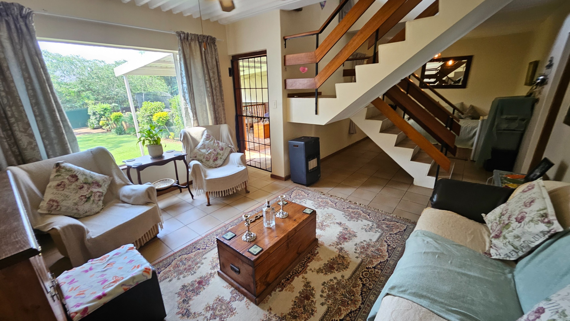 Upstairs you will find 3 x bedrooms all with built-in cupboards. The main room opens onto a lovely balcony and includes an en-suite bathroom. The remaining 2 rooms have aircon and are served with a second bathroom.