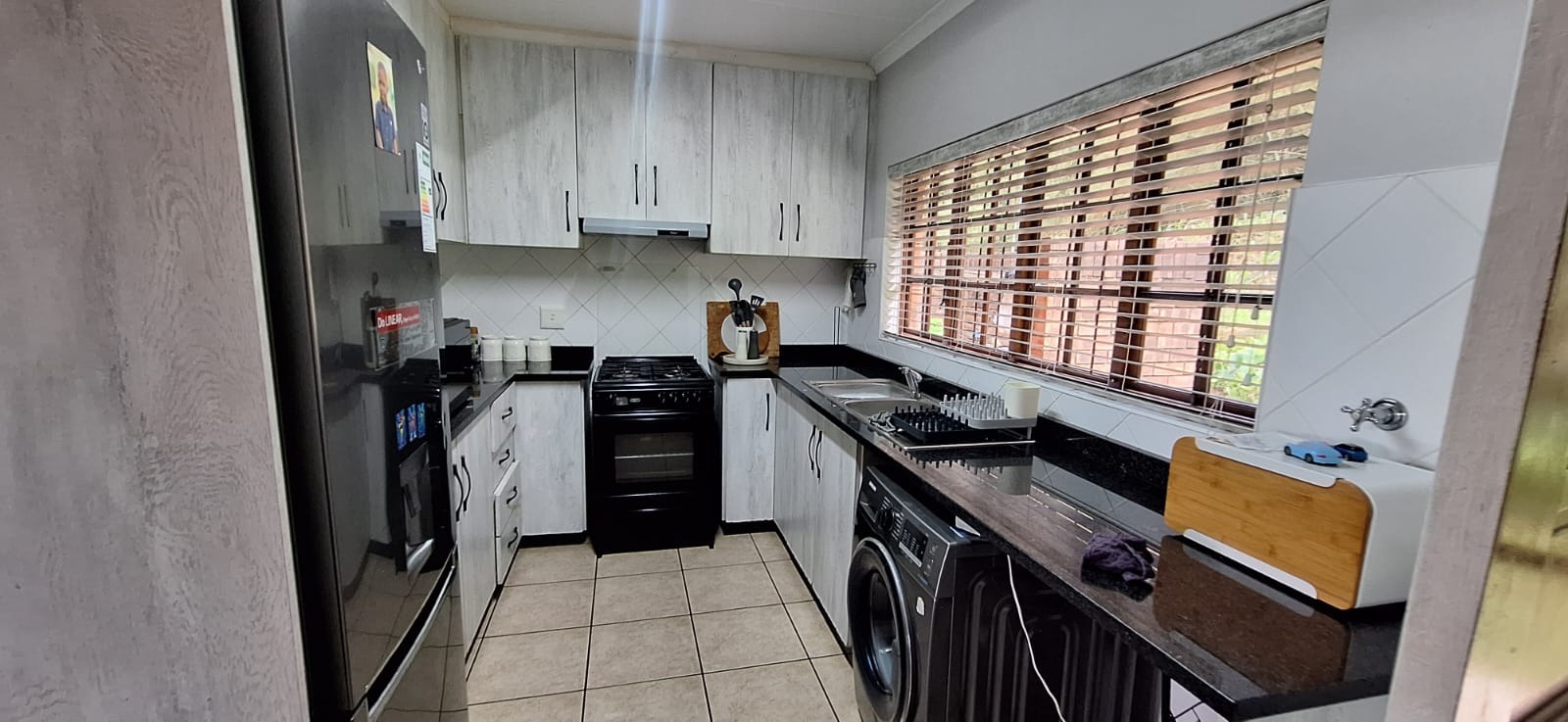 This 3 bedroomed, 2 bathroom simplex fully tiled with a fabulous fitted kitchen awaits you. The lounge and dining room are open planned, with a gorgeous verandah over looking a well landscaped garden. There is an enclosed washing line facility off the kitchen.