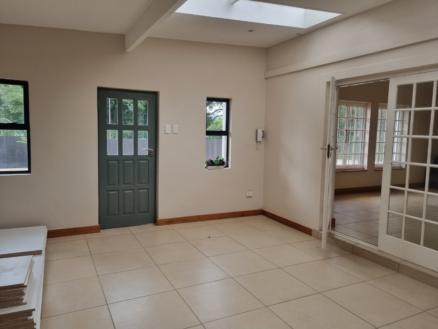 RE/MAX is pleased to offer this newly renovated, ground floor, Corporate Offices. Ideal for Accountants, Lawyers, Doctors and the like. Entering into a small but spacious reception area, leading into a large office with interleading stacking doors into a smaller office with its own entrance. There are two more spacious offices, all with split air-con units. The unit is fully contained with both male and female toilets, and a large exclusive use kitchen. Eight parking bays have been allocated to this unit at R250 per bay. The unit has internet connection, which is included in the rental, excluding electricity and water, which is on its own meter. The landlord is looking at a minimum of a 3 – 5 year lease.