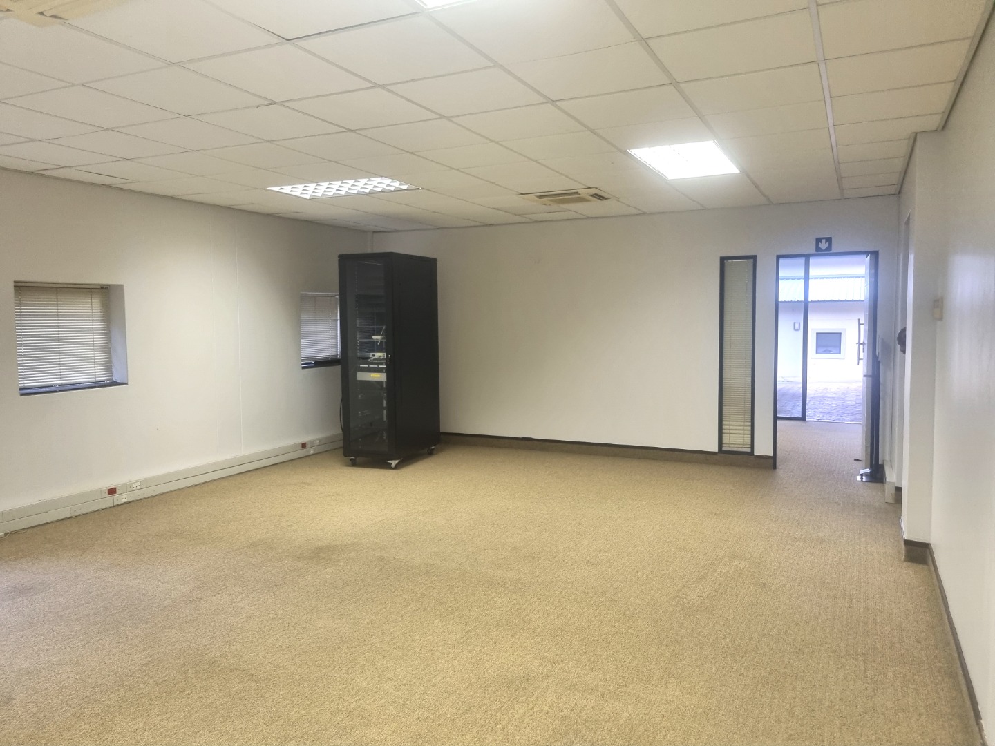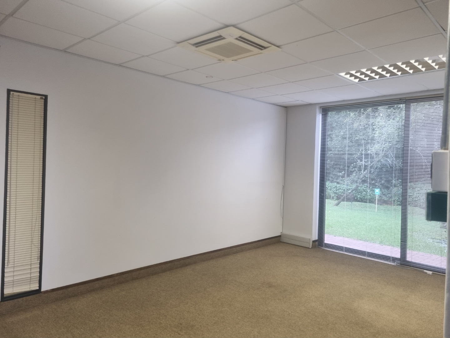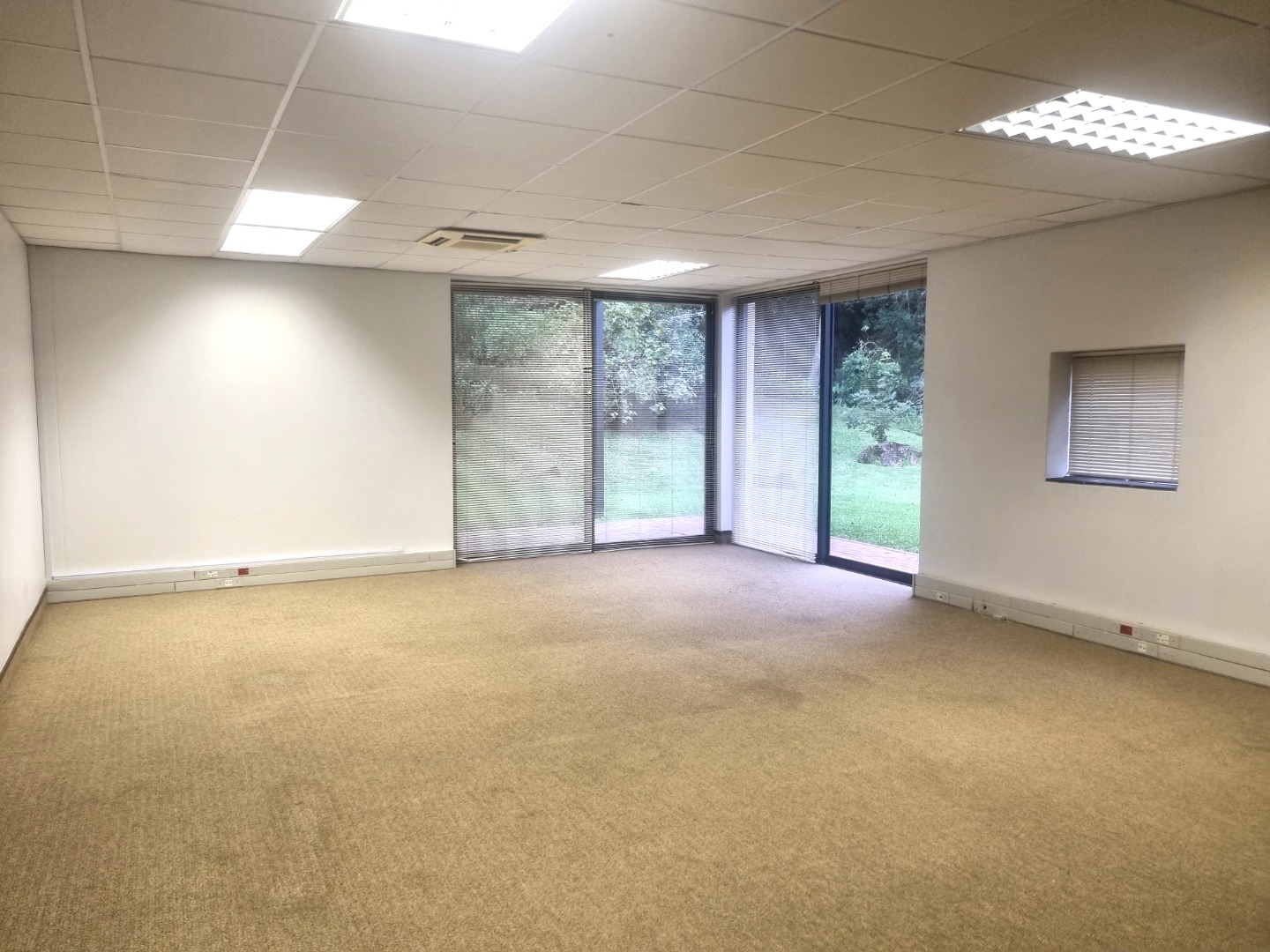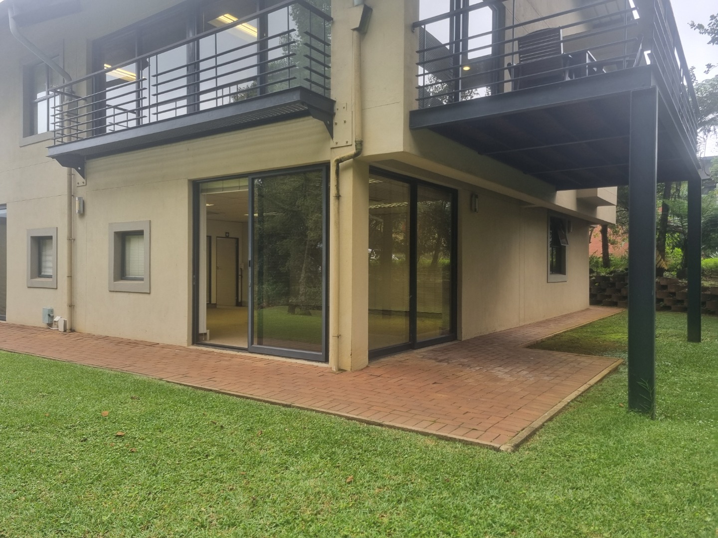 The unit is in extent of 90m2 with direct access from the parking. This is ideal for companies that need trolley or wheelchair access. The unit has its own entrance into a large spacious reception area, which leads into a big open plan area. Both the reception area and the open plan have glass sliding doors onto a lush garden area with a covered terrace. There is an exclusive use kitchen and shared male and female toilets.