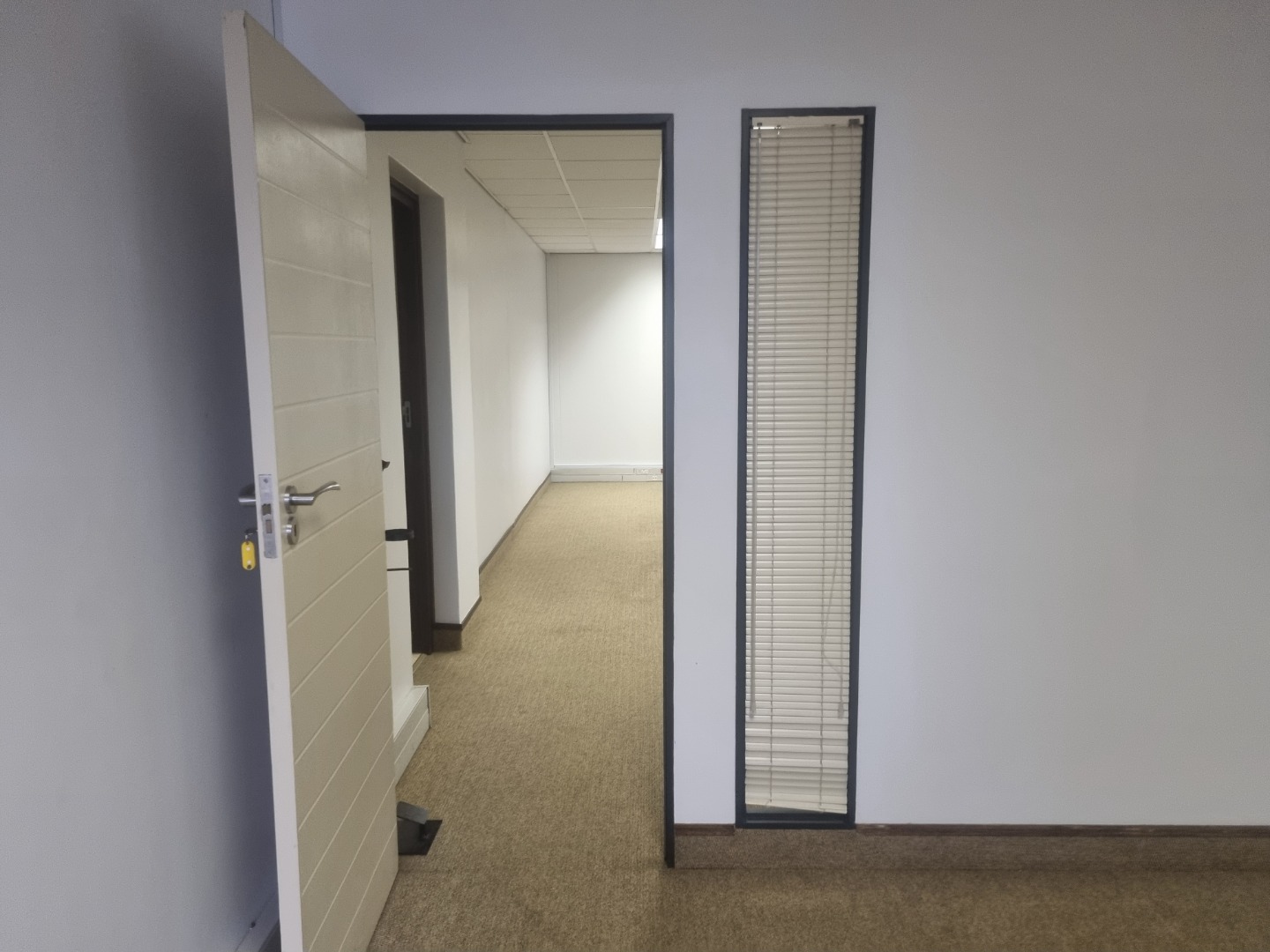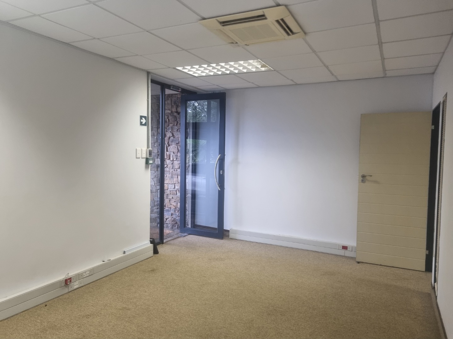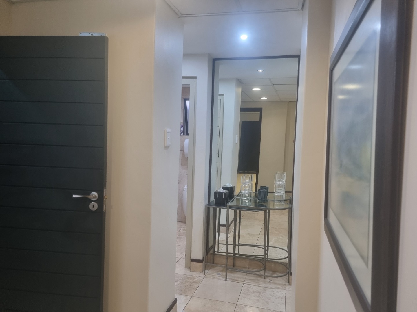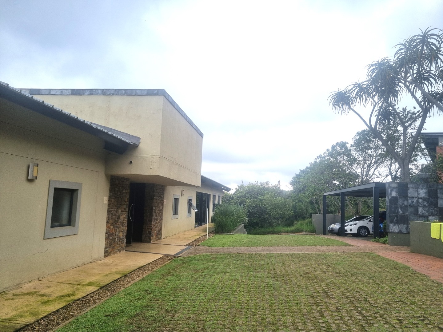 The unit is in extent of 90m2 with direct access from the parking. This is ideal for companies that need trolley or wheelchair access. The unit has its own entrance into a large spacious reception area, which leads into a big open plan area. Both the reception area and the open plan have glass sliding doors onto a lush garden area with a covered terrace. There is an exclusive use kitchen and shared male and female toilets.