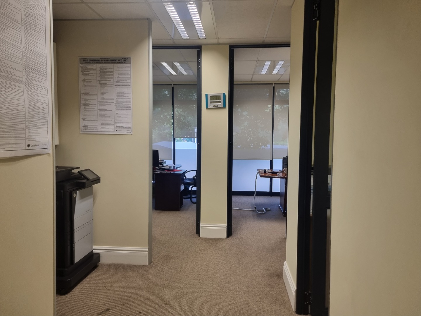 The unit consists of an inviting reception area, 3 nice size offices, and own kitchen. The toilets are shared. There are 3 bays allocated to these offices, 1 basement bay at R650 per bay per month plus VAT, and 2 shade cloth bays at R450 each per bay per month plus VAT. Occupation is 1st November 2025. The landlord is looking at a minimum of a 3 year lease. For further information, or to arrange a viewing, please contact Michele Lamb.