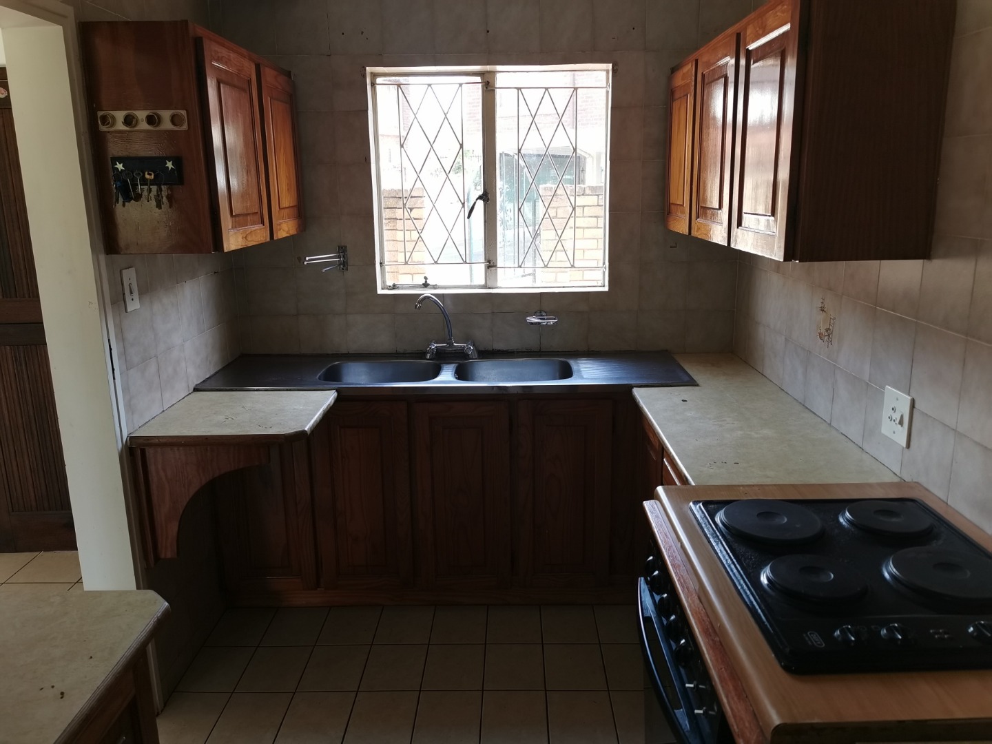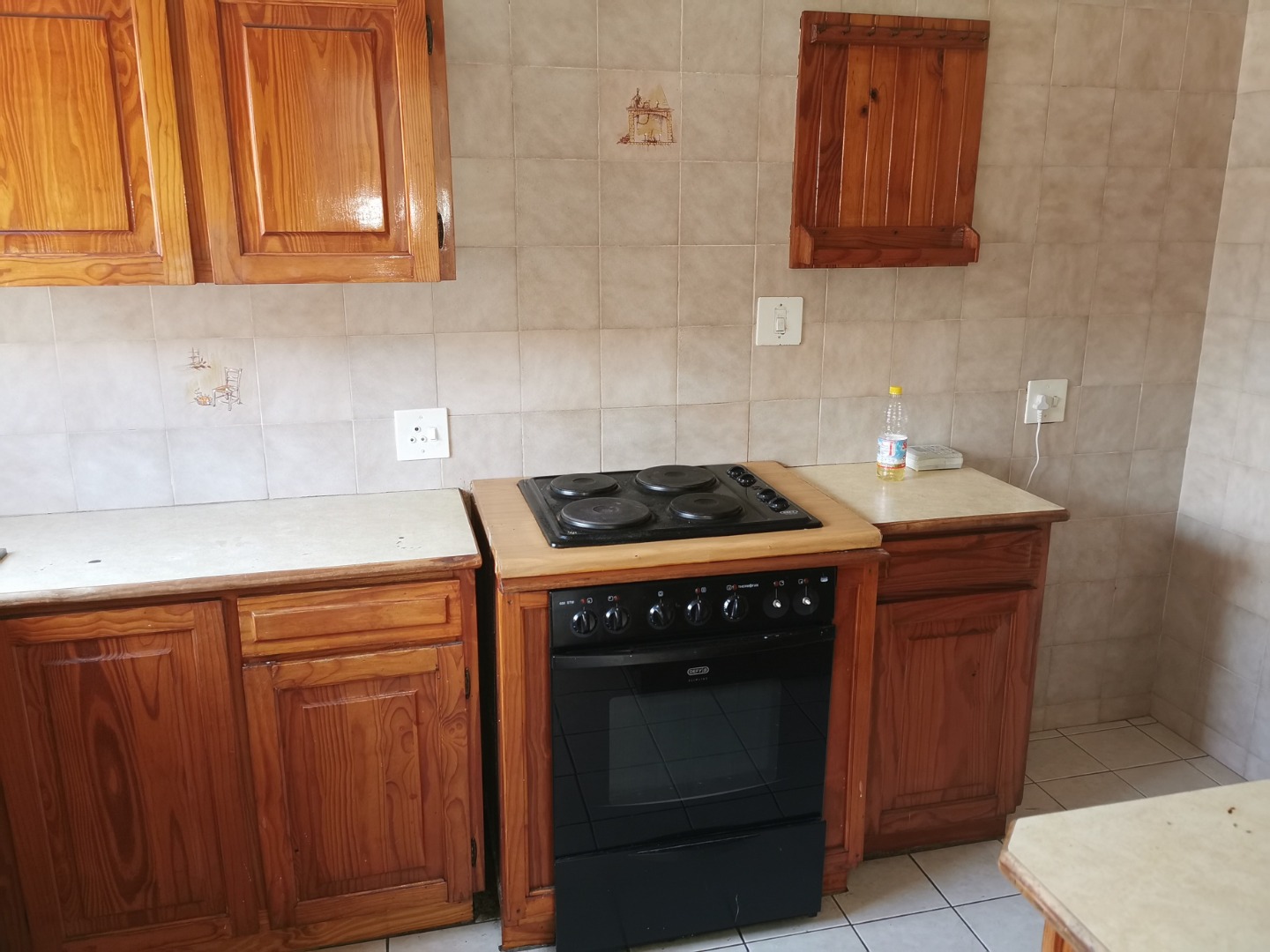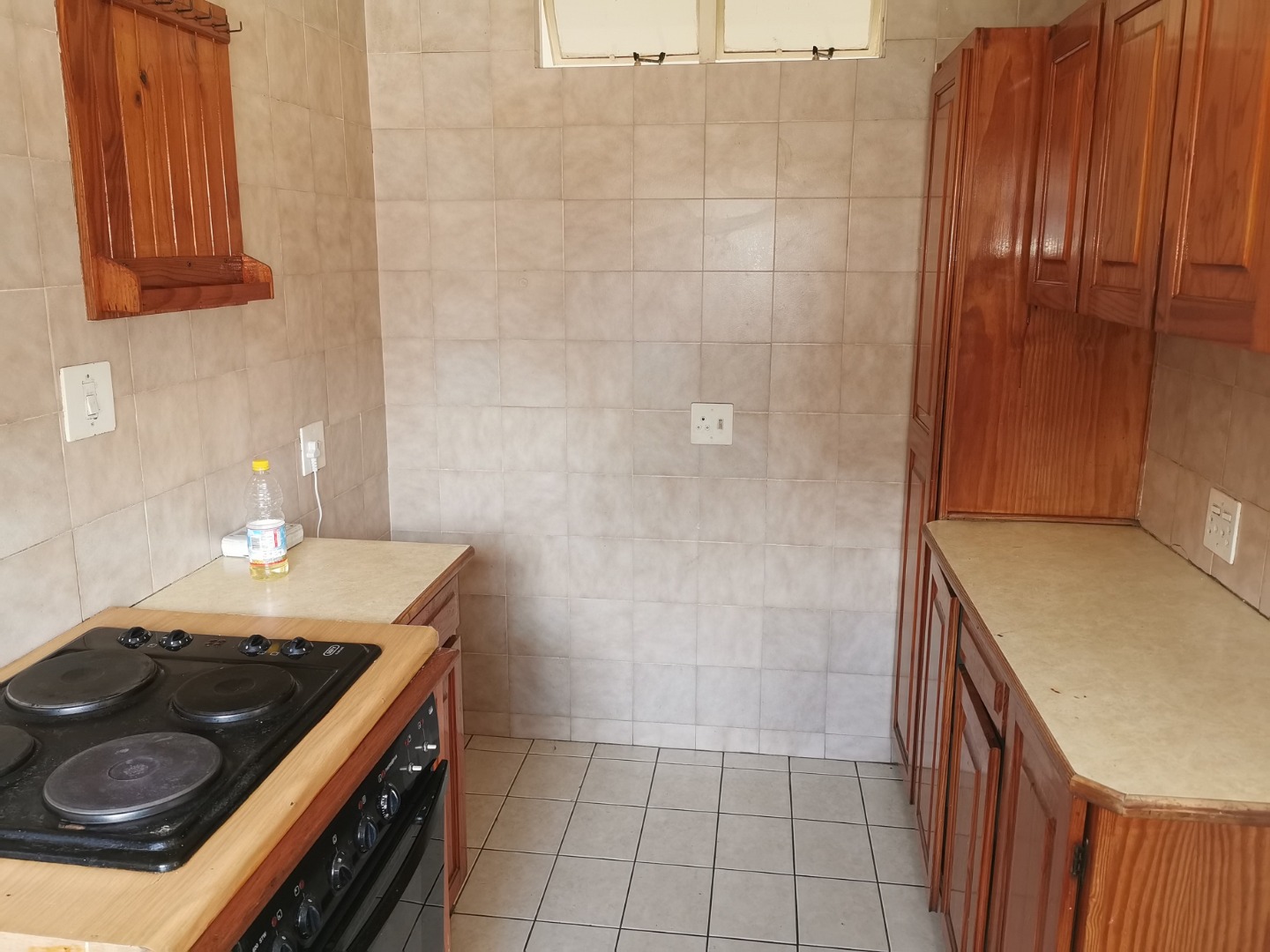 Spacious ground floor flat for rent with a neat interior featuring tiled floors. Open plan lounge and dining room, both bedrooms with built-in cupboards, and a fitted kitchen with built-in stove. Enjoy your own private garden and secure undercover parking. This property includes prepaid electricity and excludes water costs.