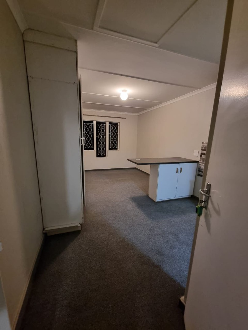 Bachelor apartment on the first floor with open-plan living area, kitchenette, built-in cupboards, and bathroom. Features carpeted floors and open parking. Enjoy a communal swimming pool and guard house. Walking distance to UKZN and Scottsville Mall. Includes water & refuse in rent, with pre-paid lights. No pets allowed. Ideal for a single professional or student seeking convenience and comfort in a prime location.
