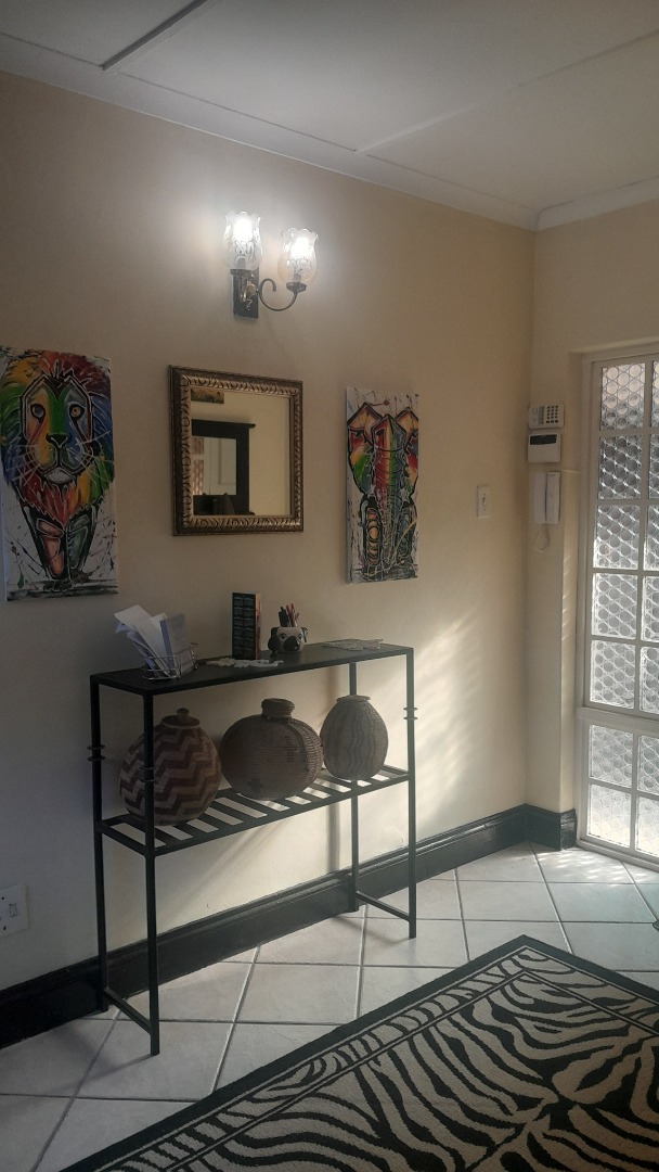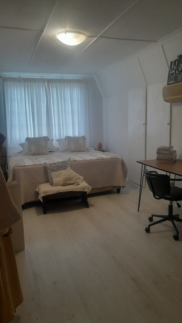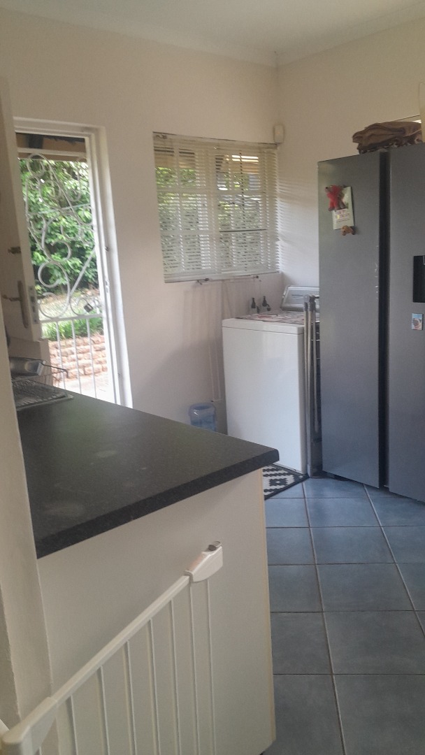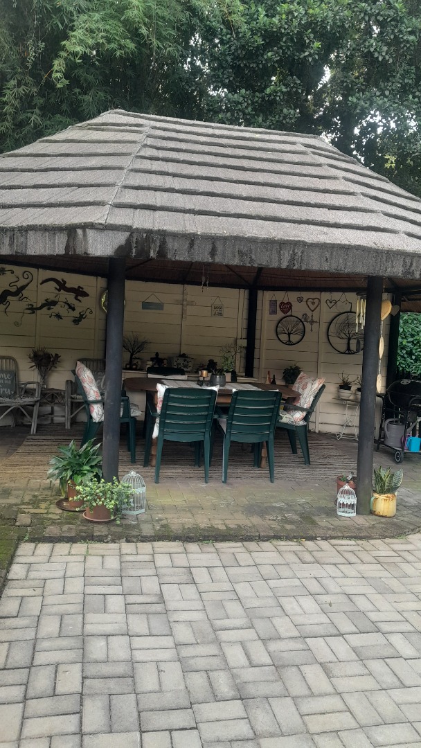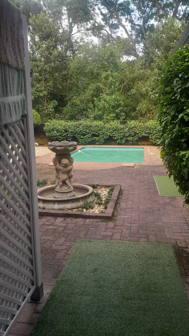 This gorgeous spacious 3 bedroomed home with two full bathrooms is available to rent. Well maintained with a beautiful lounge area with bay windows and a separate dining room. Large spacious kitchen with 2 x double sinks and an ELO/HOB. Plenty cupboard space in this lovely kitchen with a backdoor leading out into a courtyard. Beautiful landscaped garden with a great size pool and a stunning undercover thatch for all your entertaining. The home offers you a double garage and a double carport. One little store room available next to the garages. There is a small 1 bed flatlet that is currently occupied by a single professional person.