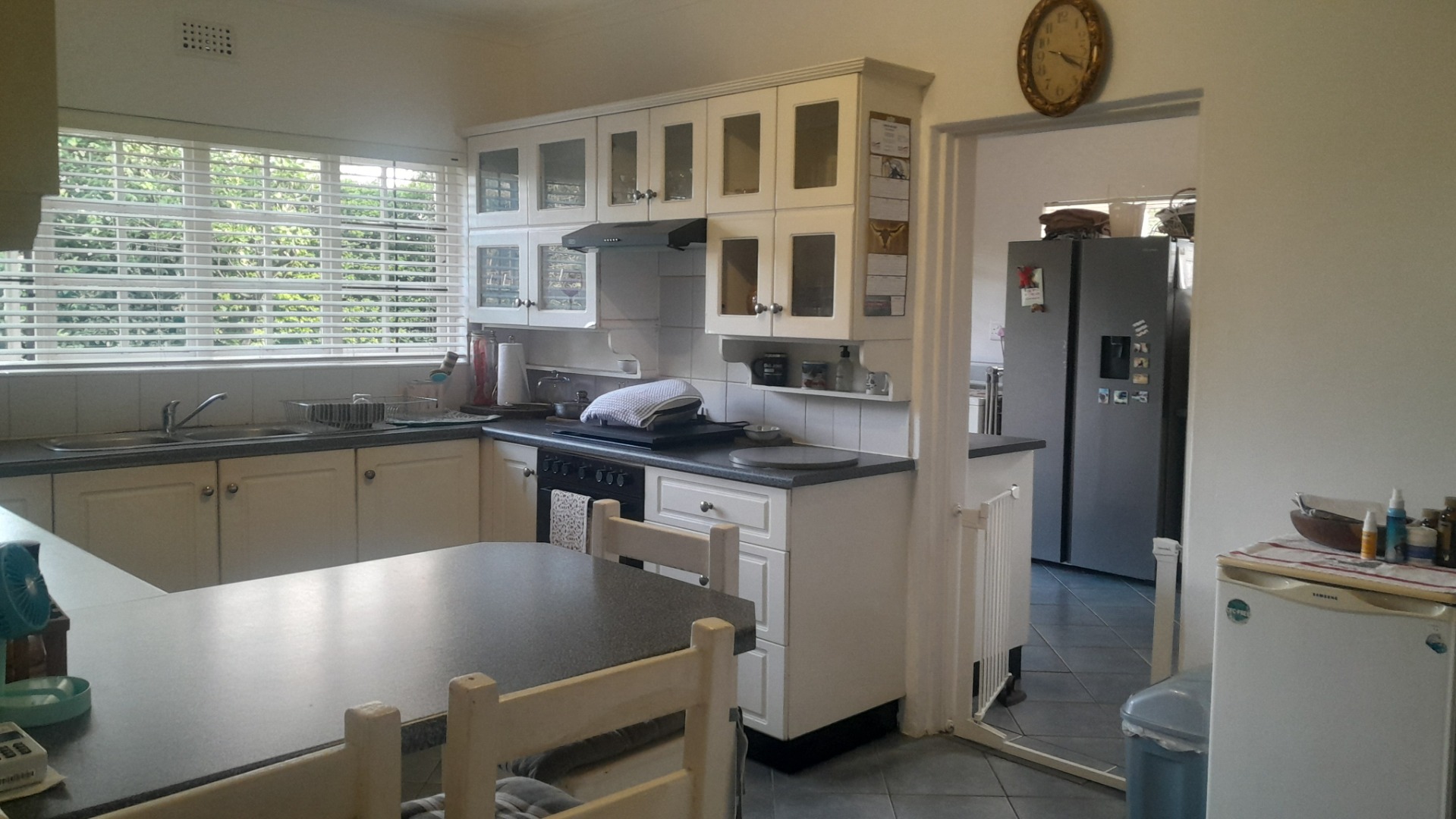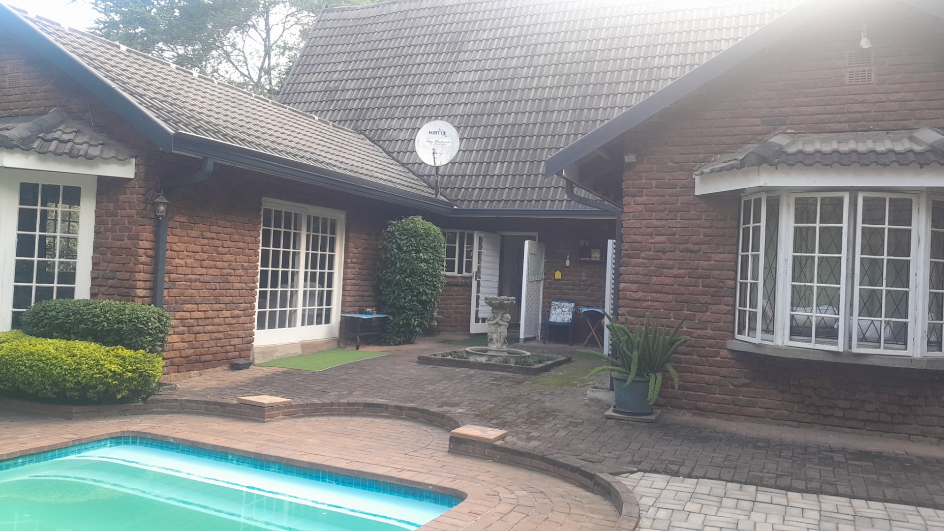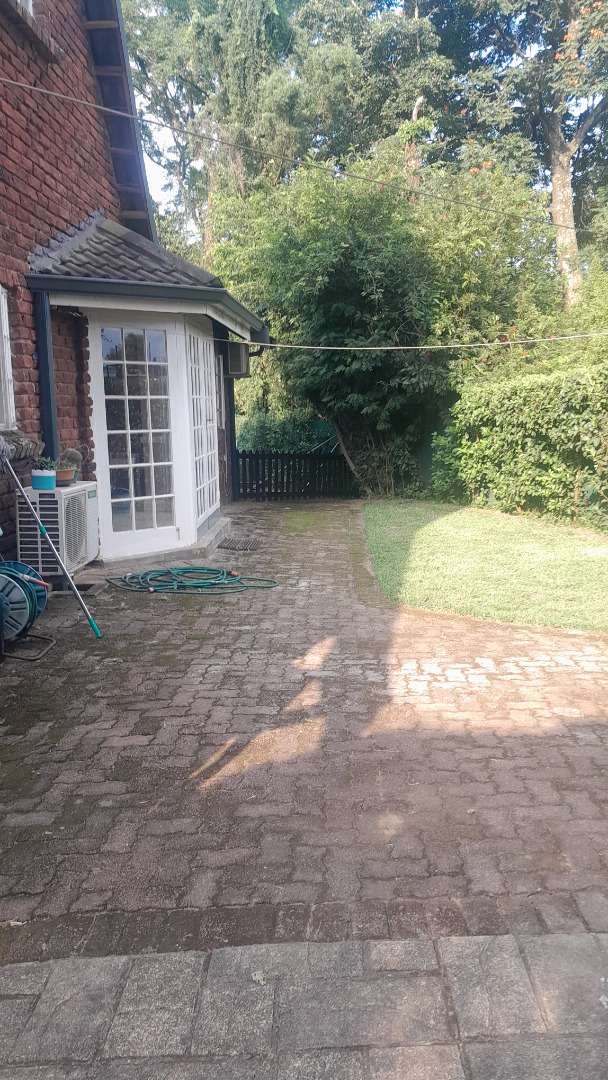 This gorgeous spacious 3 bedroomed home with two full bathrooms is available to rent. Well maintained with a beautiful lounge area with bay windows and a separate dining room. Large spacious kitchen with 2 x double sinks and an ELO/HOB. Plenty cupboard space in this lovely kitchen with a backdoor leading out into a courtyard. Beautiful landscaped garden with a great size pool and a stunning undercover thatch for all your entertaining. The home offers you a double garage and a double carport. One little store room available next to the garages. There is a small 1 bed flatlet that is currently occupied by a single professional person.